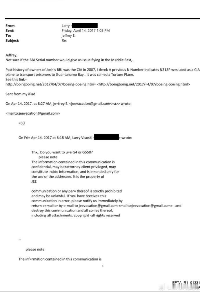 爱泼斯坦的私人飞行员曾向他发出警告:他们使用的某一架喷气式飞机的尾号,与美国中央情报局(CIA)“引渡航班”的尾号相同——那些航班专门用于将囚犯押往黑狱并实施酷刑。 幸存者一直指出,爱泼斯坦之所以能长期逍遥法外,正是因为他得到了“情报级别”的庇护;如今,这一尾号细节为他们的说法再添佐证。