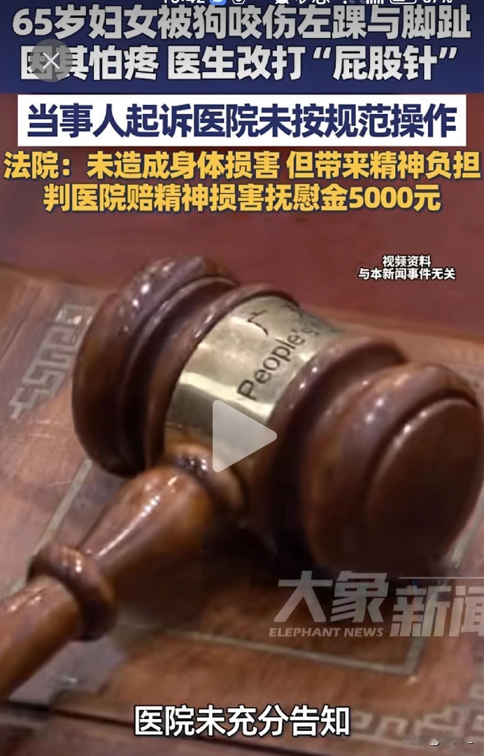 65岁大妈被狗咬脚,因怕疼拒在脚上打针,医生改打“屁股针”,结果大妈以医院操作不规范告上法庭!网友:医闹新高度? 近日,大象新闻记者从中国裁判文书网获悉了一例让人瞠目结舌的案件。 河北,有位65岁的姜大妈,出门时被狗“咔嚓”一口咬中了左踝和脚趾头,赶紧跑医院打狂犬病针。 按规矩,这种针(免疫球蛋白或者抗狂犬病血清)得围着伤口“一圈圈扎进去”,让药水在伤口附近“安营扎寨”,才算规范。 可大妈刚挨了几针,就疼得直拒绝继续脚上注射。 医生看她实在难受,就把剩下该打在脚上的药水,“挪”到了屁股上——给大妈来了针“臀肌注射”。 结果,这一挪,挪出事了。 大妈回家后越想越不对劲:脚上伤口没按标准打针,会不会没效果?万一得狂犬病咋办?家里人一合计,直奔医院讨说法。 医院也挺委屈:“当时是她自己喊疼不让打脚的呀!而且后来检查了,她体内抗体是阳性的,免疫已经生效了,没风险!” 可大妈一家不买账:“你当时也没说清楚不按规范打的后果呀!”一纸诉状,把医院告上了法庭。 法院最近判了:医院确实有错! 法官说了:医生改打屁股针,没毛病,但关键没做到两点—— 1️⃣没把“不按规范打针”的潜在风险讲明白; 2️⃣没拿到大妈“我知情并同意”的明确点头。 虽然检查证明大妈的免疫确实生效了,身体没实际损伤,但这事儿给大妈带来了实实在在的“心里疙瘩”——总担心自己没打好针、会不会得病,这属于精神损害。 最后法院拍板:医院赔5000元精神损失费(之前已付2000,还需补3000元)。 网友热议: “大妈怕疼能理解,但医生该坚持还得坚持啊!” “医院冤不冤?患者自己说不打,打了又被告…” “这事提醒我们:医疗程序一步都不能马虎,解释工作更重要!” “今天闹得有多欢,以后看病就有多难。” “医闹闹出新高度!” “所以说,有时候不能怪医生护士的冷漠,有果必有因!” “所以,完全按照流程操作才是对的,别心软!” 这事儿看似小事,却扎中两个关键:医疗规范不能随便“打折”,患者知情权必须“到位”。 医生好心减轻患者疼痛可以,但该说的风险、该走的流程,一步都不能省。否则好心也可能办成“糟心事”! 就是说,好心也得有原则,好心也得先保全自己。但问题来了,当命悬一线和医疗规范告知冲突时,哪个更优先?是先救人还是先讲解告知书? 所以,公众有维护自身权益的自由,但事也不能做绝。让扶人者大胆出手,让见义勇为者没有后顾之忧,让医者仁心无需先给自己找免责条款,让老师敢于“严师出高徒”。 对此,你怎么看? 你觉得这5000元赔得该不该?留言区聊聊! 素材来源:大象新闻,侵联删!