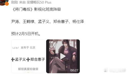 网传将门毒后2月5日开机将门毒后终于要开拍了吗,网传预计2月5日开机,主演王鹤