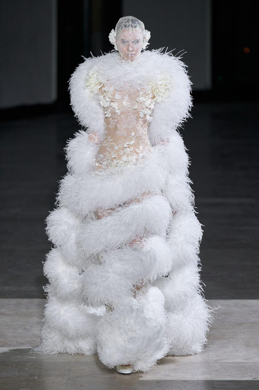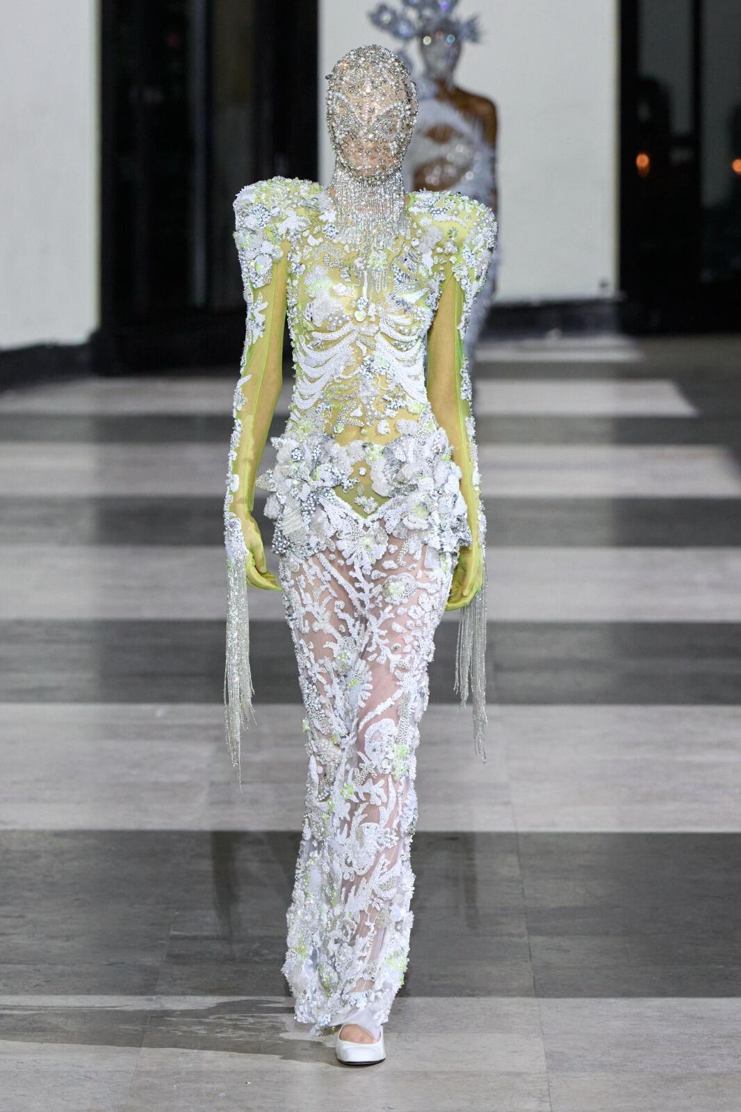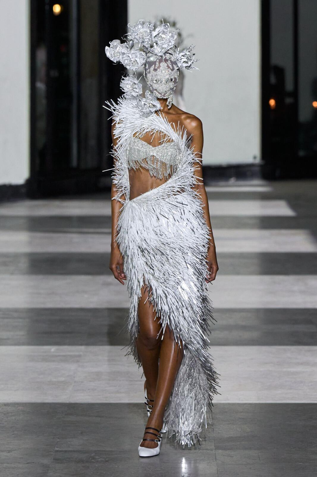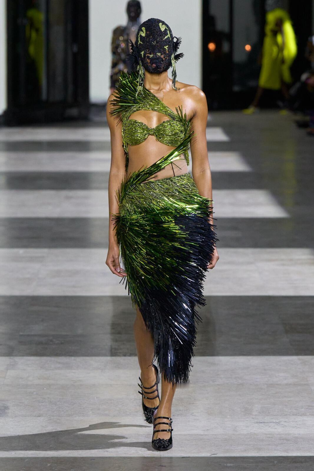 巴黎高定时装周大秀直击 Germanier 26春夏高定,这场巴黎高定压轴秀直接把环保玩成了暗黑童话✨Germanier用LVMH库存余料+巴黎奥运队服碎布,做出了荧光绿机车夹克、午夜蓝巨型薄纱裙,连面罩都是全刺绣的。开场的“叛逆女王”造型、阿尔卑斯神话感婚纱,配上迷幻电子乐,把可持续做成了又酷又华丽的视觉炸弹。原来环保高定也能这么快乐又上头。