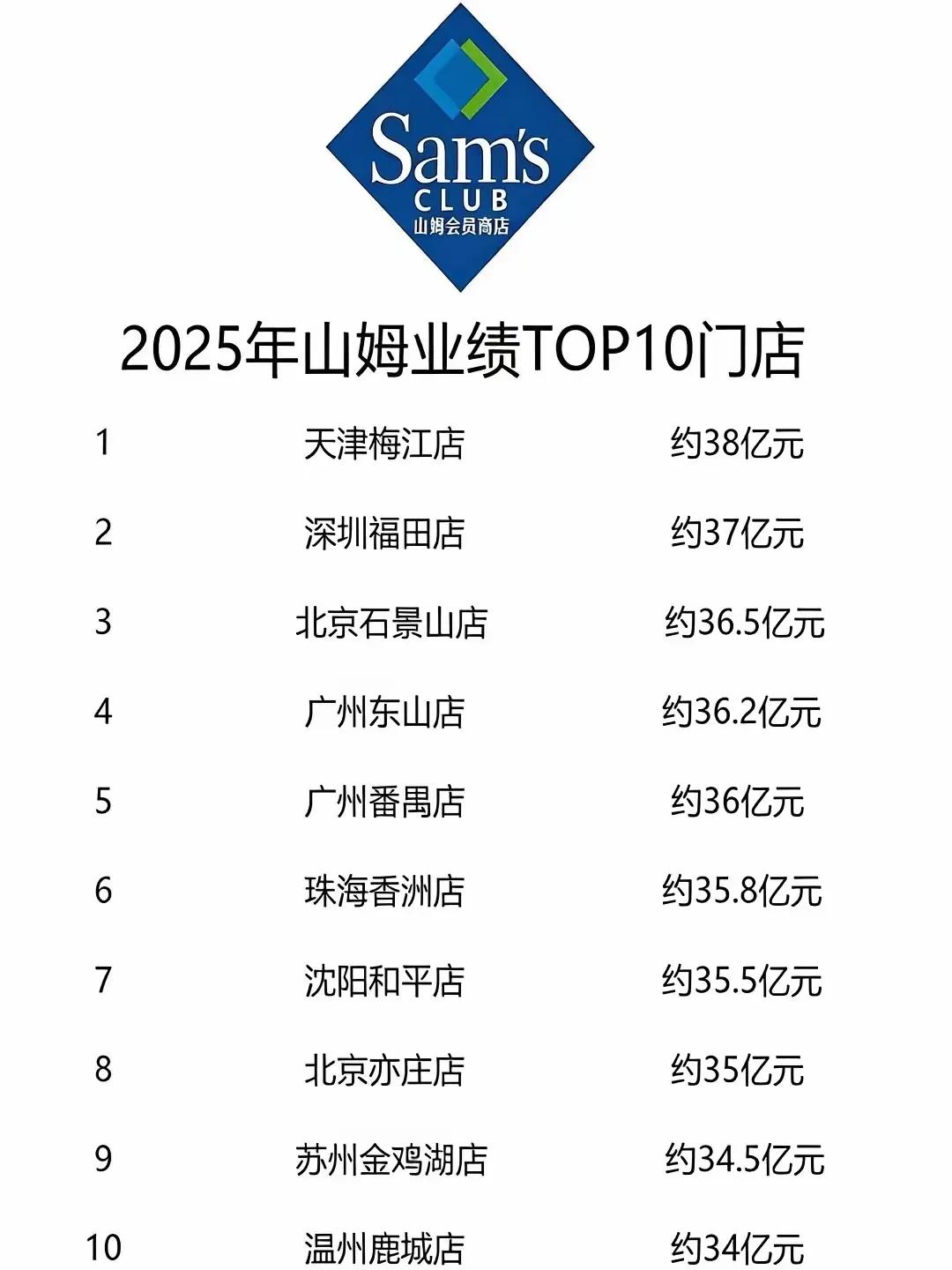 在北方,天津的消费能力还是强大的,山姆在天津的梅江店去年是全国第一。 超过了深圳的福田店,达到了38亿,还有一点前十当中北方占了四个,都是三十亿级别以上的。
