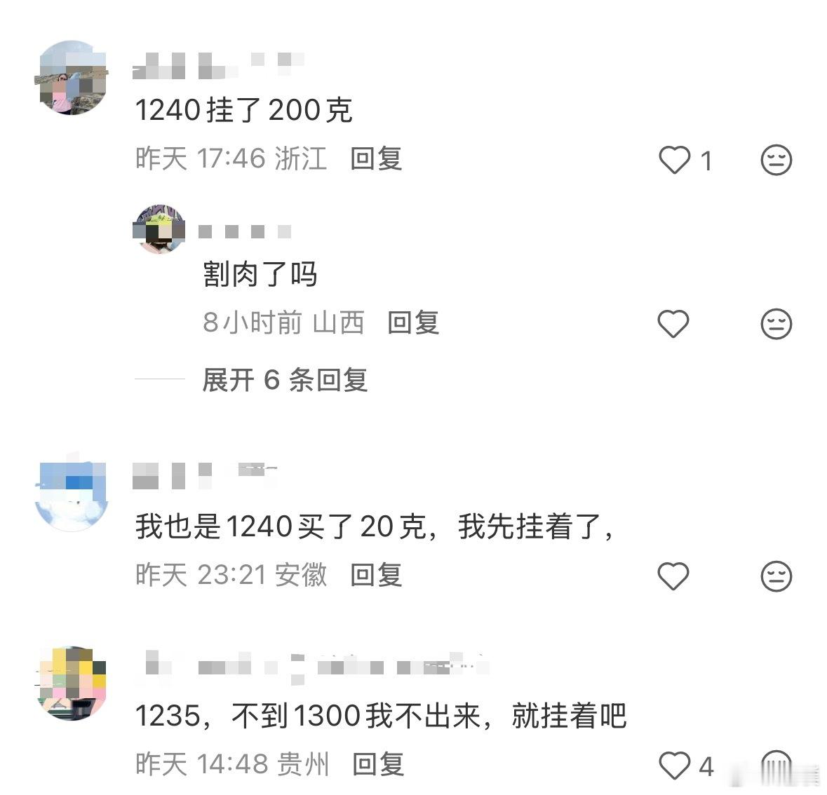 黄金遭遇40年来最大下跌国内黄金收盘价格是每克1060元,已经刷到好几个人在1200+进场的,不知道大家都是多少钱入的?