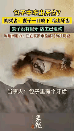“太恶心了!”四川西充,一女子在吃丈夫买回来的包子时,感觉嘴巴里有一个硬硬的东西,她还以为是骨头,可吐出来看清楚居然是一颗人的牙齿。而她自己没有假牙,所以只能是包子馅里的,女子当即恶心的跑到厕所去吐了,丈夫立马去找店家,店家退了包子钱! 从视频里看,这个牙应该是假牙,就是补的,因为里面还有金属,我也补了三颗,所以认识。能在包子馅里,那就是拌馅的工作人员的。难道他们都不戴口罩的吗?这也太恶心人了好吧,想到自己吃到别人牙齿的感觉,光想想都要吐了,更别说女子本人了,要是我估计好几天都吃不下饭了,以后都不敢再吃包子了! 而这家包子店还是连锁店,没想到卫生也这么不到位,必须严查! (视频来源:果然视频,侵删[祈祷])