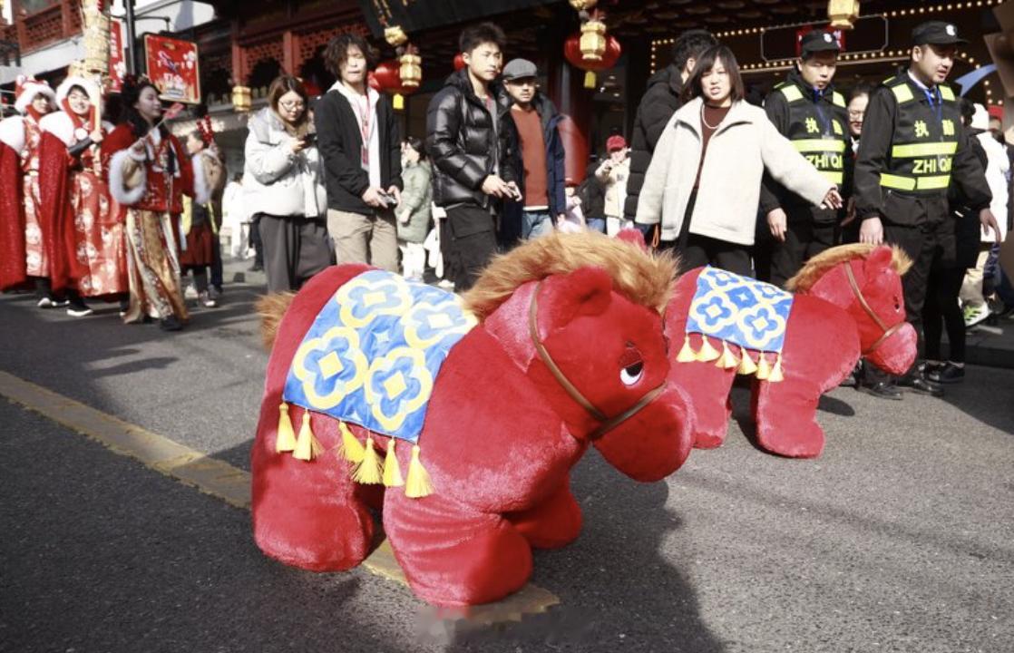 来上海豫园抓个马谁能懂这种快乐啊!上海豫园的科技小马简直把卖萌技能点满!原本的机器狗摇身一变,成了软萌小马,在花街开启炸街式游行。它穿梭在古街,以各种花式动作和游客贴贴互动,热情得像久别重逢的老友。更让人忍俊不禁的是,它还主动凑到真狗狗跟前贴贴唠嗑,社牛属性直接拉爆,萌趣值狠狠锁死,可爱程度完全犯规! 上海·豫园