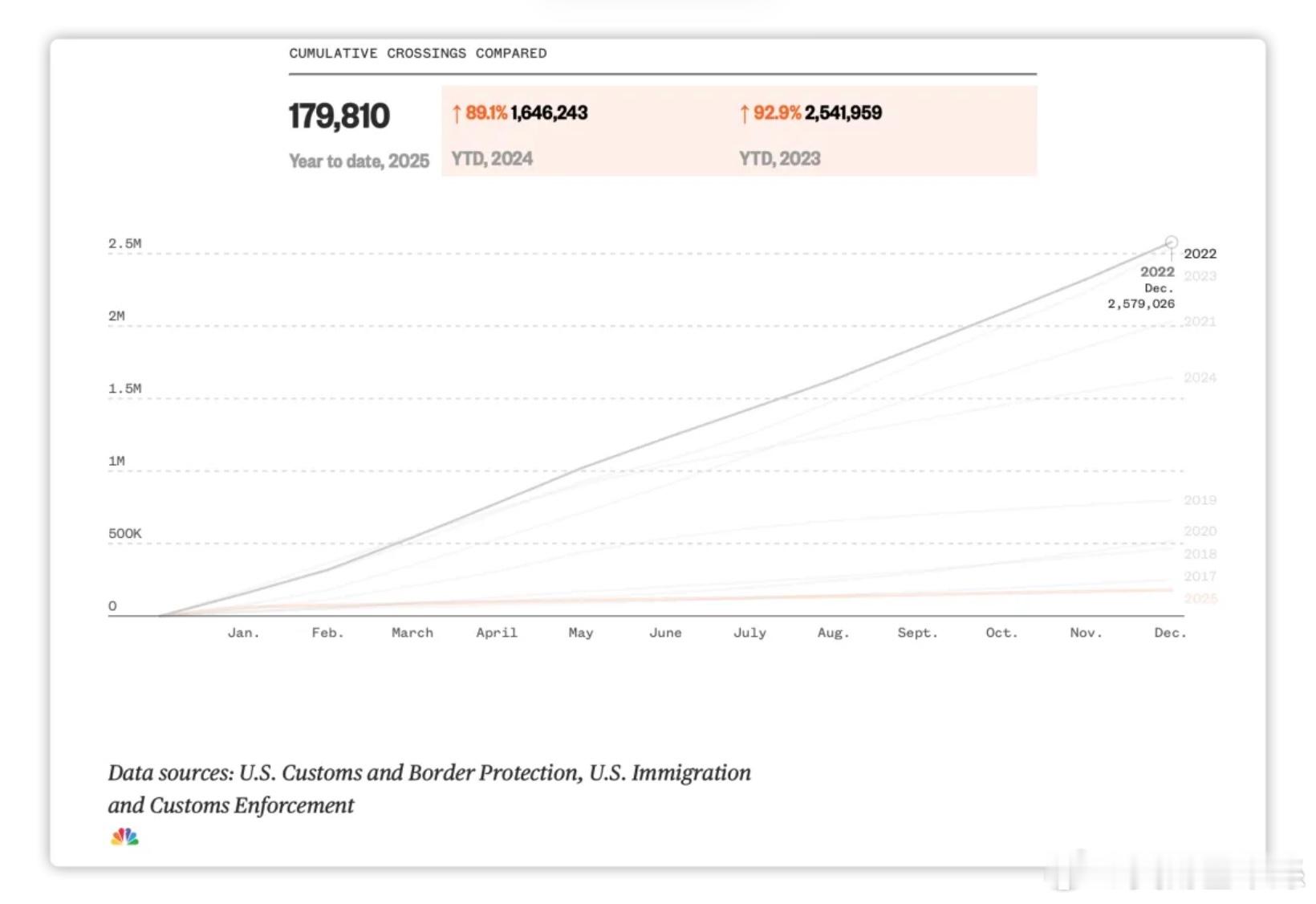 《NBC》统计的2020-2025年入美的非法移民数据,最高峰的2022年全美涌进了257.9万,2020-2025年间,非法移民的总数量是947.77万,众所周知,非法移民更加倾向于前往民主党主导的加利福尼亚等蓝色州,然而加利福尼亚州有着全美第一大人口基础(3955万人),非法移民大量涌入的情况下,过去五年的总人口数量却在减少!说明有着大量人口选择离开加利福尼亚!