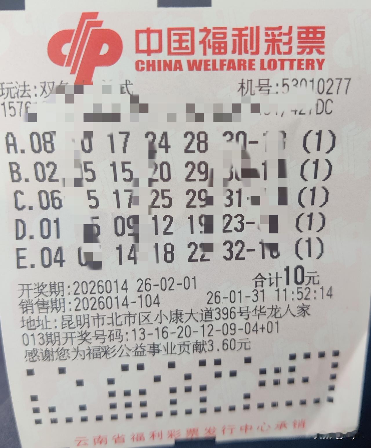 沾沾喜气!马年行大运! 刚刷到昆明这个彩票站的消息,我直接坐不住了!就在北市区小康大道396号华龙人家,相隔两期就开出两个双色球一等奖! 关键是,这个站点离我家步行才十几分钟!今天周末本来只是出来散散步,抱着半信半疑的心态过去看了看,没想到是真的! 好久没碰彩票的我,当场就买了几注双色球,必须沾沾这满到要溢出来的喜气! 新的一年马上就到了,希望这份好运能传递给我,让我也当一次幸运儿!祝大家马年都能红红火火,好运连连,大奖拿到手软!