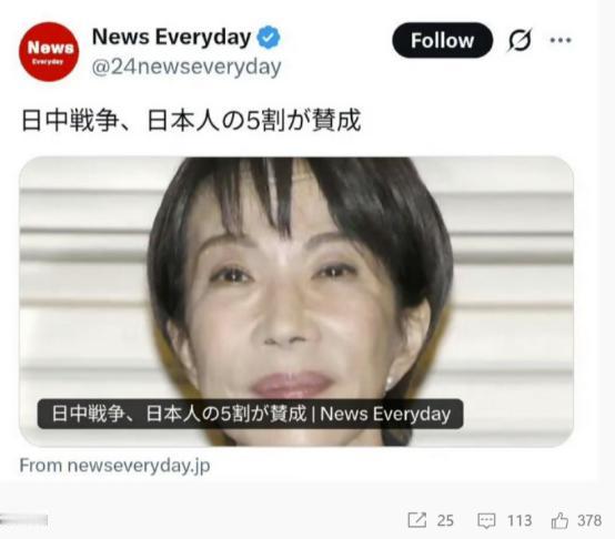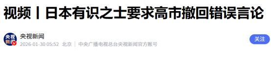 如此嚣张?2026年1月29日,日本有识之士要求高市撤回错误言论!但外媒却报道称,据日本民调机构的调查显示,有一半的日本赞成中日打一仗! 针对台湾问题,我国多次表明中方的立场。但是就在2025年11月初的时候,日本首相高市早苗却公然发表涉台言论,将台湾问题同日本挂钩。其行为引起外界的高度警惕,更是引起轩然大波。 我国第一时间提出严正交涉以及强烈抗议,与此同时,日本国内更是纷纷要求高市早苗撤回错误言论。但其仍没有丝毫的悔改之意,就在2026年1月29日的时候,日本部分有识之士再度发出要求,要求高市早苗撤回错误言论。 据日方有识之士表示,日本对过去侵略中国的战争,以及殖民统治所应承担的责任履行极其不充分。就在日本部分理智人员强烈谴责首相的错误言论时,外媒的一篇报道却引起了极大的关注。 据外媒报道,根据日本民调机构的调查显示,有一半的日本人赞成中日打一仗。这一数据进一步证明,日本的军国主义思想在逐渐的死灰复燃。国际尤其是亚洲地区应格外关注,杜绝再度出现二战时期的场景。 针对这场中日争端,我国一直保持理智,但日方却没有丝毫的克制。从一开始的言行挑衅,到后来采取的一些实际行动,日方的言行举止在严重触碰我国底线。 战争从来都不是儿戏,人类虽是群居动物,但聚在一起并不一定要比狠。对此,您怎么看?欢迎评论区留言您的看法,我们一起讨论一下。 (信息来源:日中戰争、日本人5割力贊成-News Everyday) (信息来源:视频丨日本有识之士要求高市撤回错误言论-央视新闻)