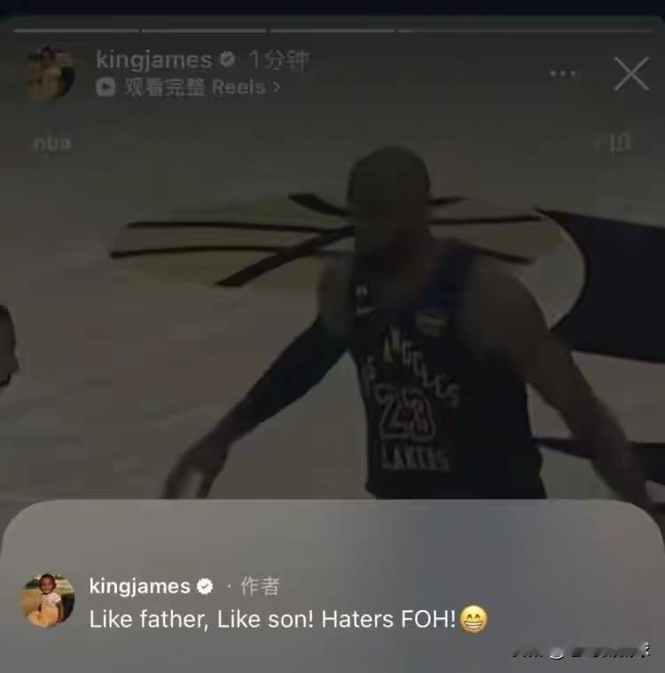 湖人超级巨星詹姆斯怒斥黑子!在今天湖人客场以142:111大胜奇才的赛后,詹姆斯特意更新社媒晒出了自己和队友布朗尼在比赛中的扣篮画面,并且这样写道:“有其父必有其子,黑子滚一边去。” 坦白说,本场比赛詹姆斯和布朗尼的表现都非常不错,他们携手为现场的球迷奉献了多记精彩的扣篮,因此那些不喜欢詹姆斯和布朗尼的人应该停止对他们的非议。