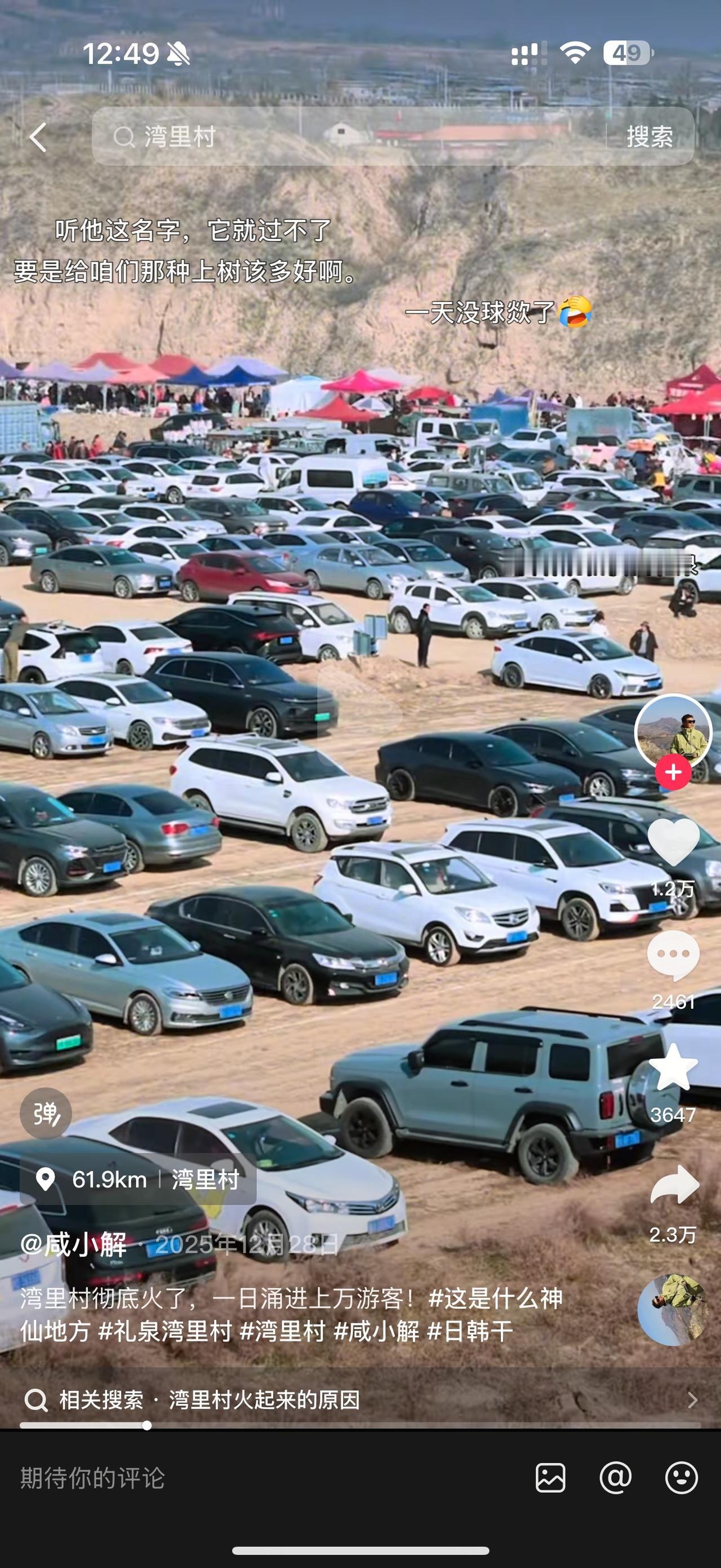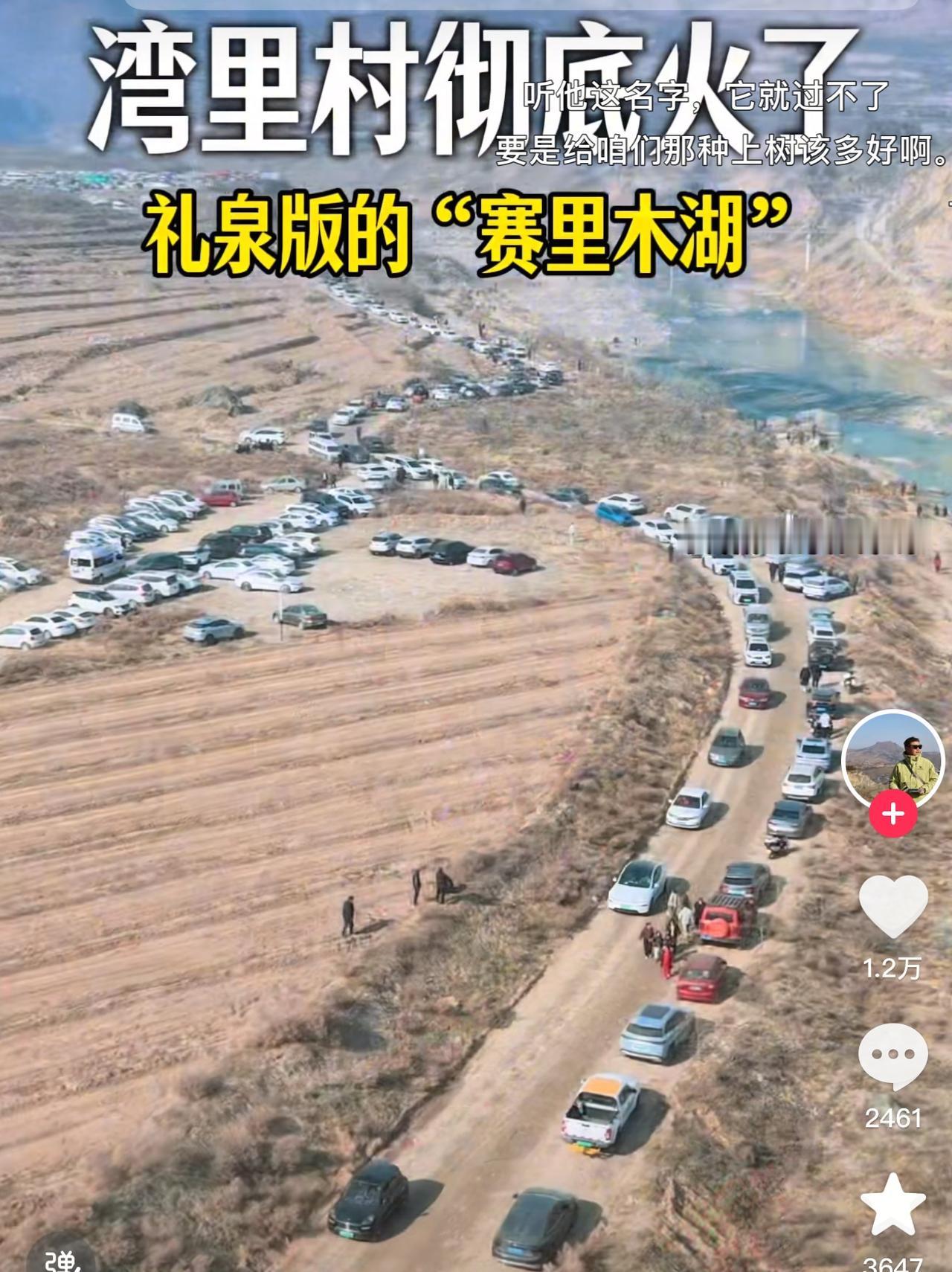 礼泉县今年最火爆的景点,不是袁家村,不是昭陵,是湾里村! 湾里村到底有多火?大明星陈晓与代旭都来这里拍戏了,湾里村现在彻底成了网红景点,周末几百辆汽车停留,西安咸阳城里人都来玩,湾里村这纯粹是老天爷赏饭吃,上游水库的水,在这个村子就变成美景,而且是十分神奇的美景!湾里村这是得到上天恩赐了!