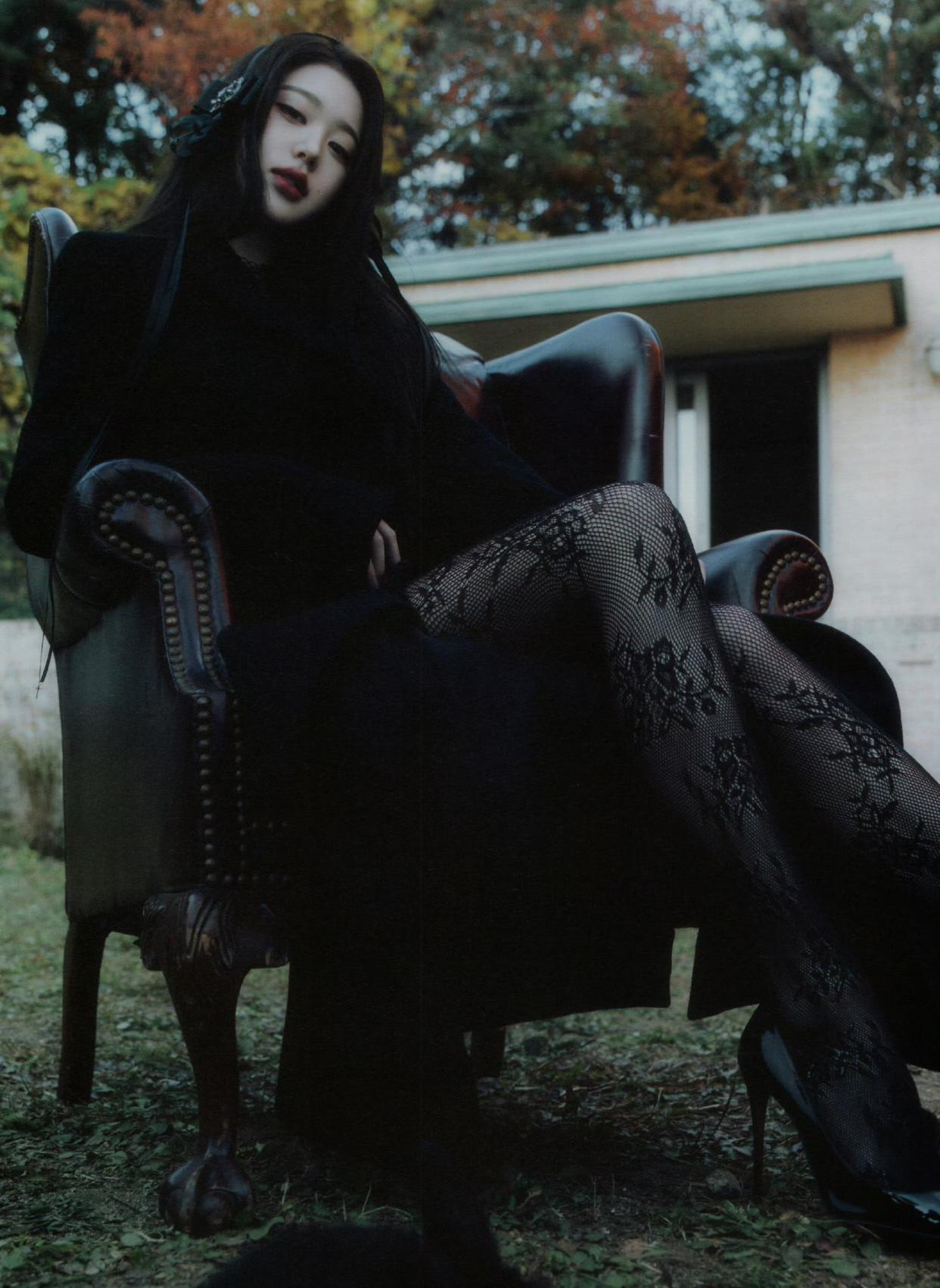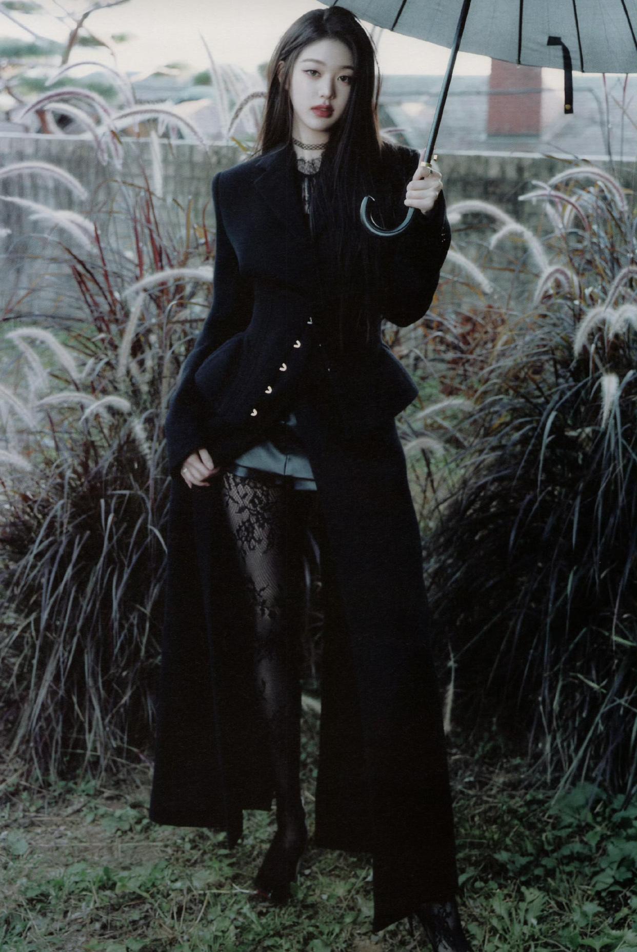 张元英这波黑丝长腿图有点意思。 一身暗黑系长款外套,收腰设计把身材比例拉到封神。 搭配的黑丝袜带点蕾丝花纹,又纯又欲,踩上细高跟,那双腿又直又长。 背景是复古感的草地和雕像,清冷又带点神秘,和她冷艳的表情一搭,有点动漫角色的味道。 不知道我们娱乐圈有没有类似的女明星,有点喜欢。