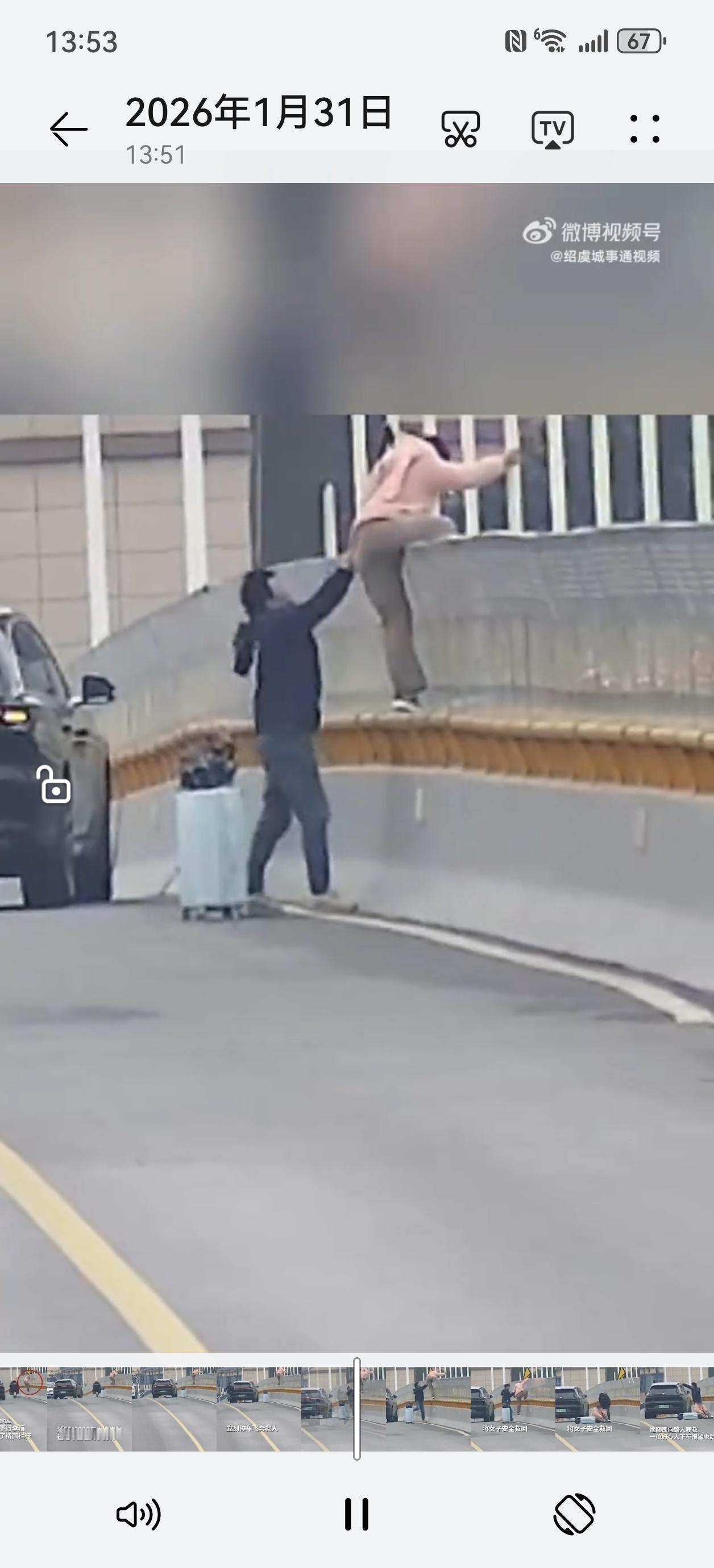 太惊险了,女子一只脚已悬在桥外,黑衣大哥冲过去一把拽回。这反应速度,这毫不犹豫的出手,是真英雄!生活难免有扛不住的时候,但请一定相信,陌生人的善意和温暖一直都在。为黑衣大哥点赞,也愿我们都能在他人需要时,伸出那只有力的手。浙江一女子脚悬桥外黑衣男飞奔救下