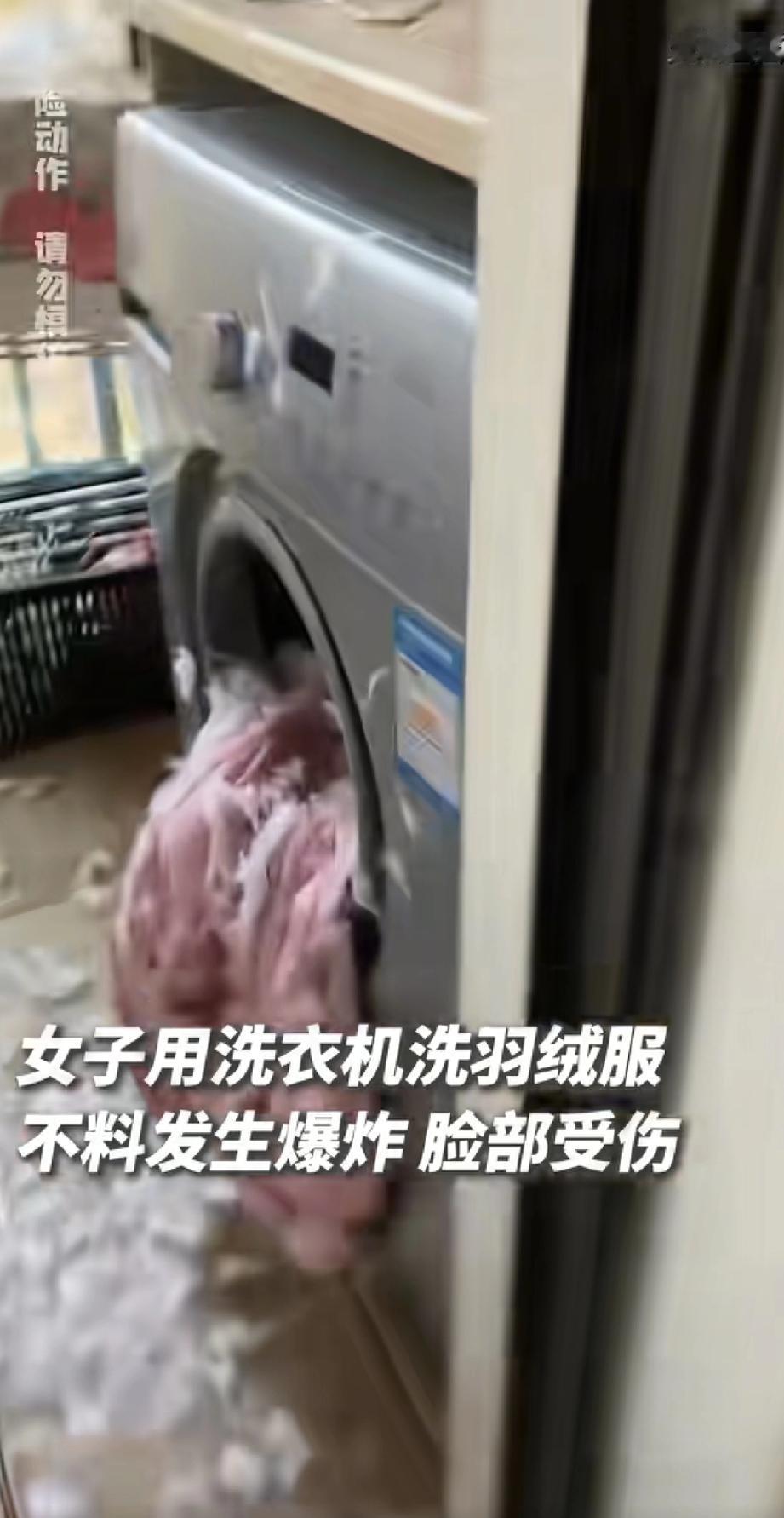 快过年了,洗衣服可得留个神!有报道说,一个小女子在家用洗衣机洗羽绒服,没想到“嘭”的一声,衣服在洗衣机里爆炸了,把脸都弄伤了。 这可不是羽绒服质量差,主要是因为洗的方法不对。羽绒服面料透气性差,湿羽绒在洗衣机里高速甩干时会剧烈膨胀,加上静电和空气挤压,就容易炸开。所以,洗羽绒服最好还是手洗,或者看看衣服标签,选有“羽绒洗”模式的洗衣机。 安全第一,别让新年新衣变“惊吓”哦!