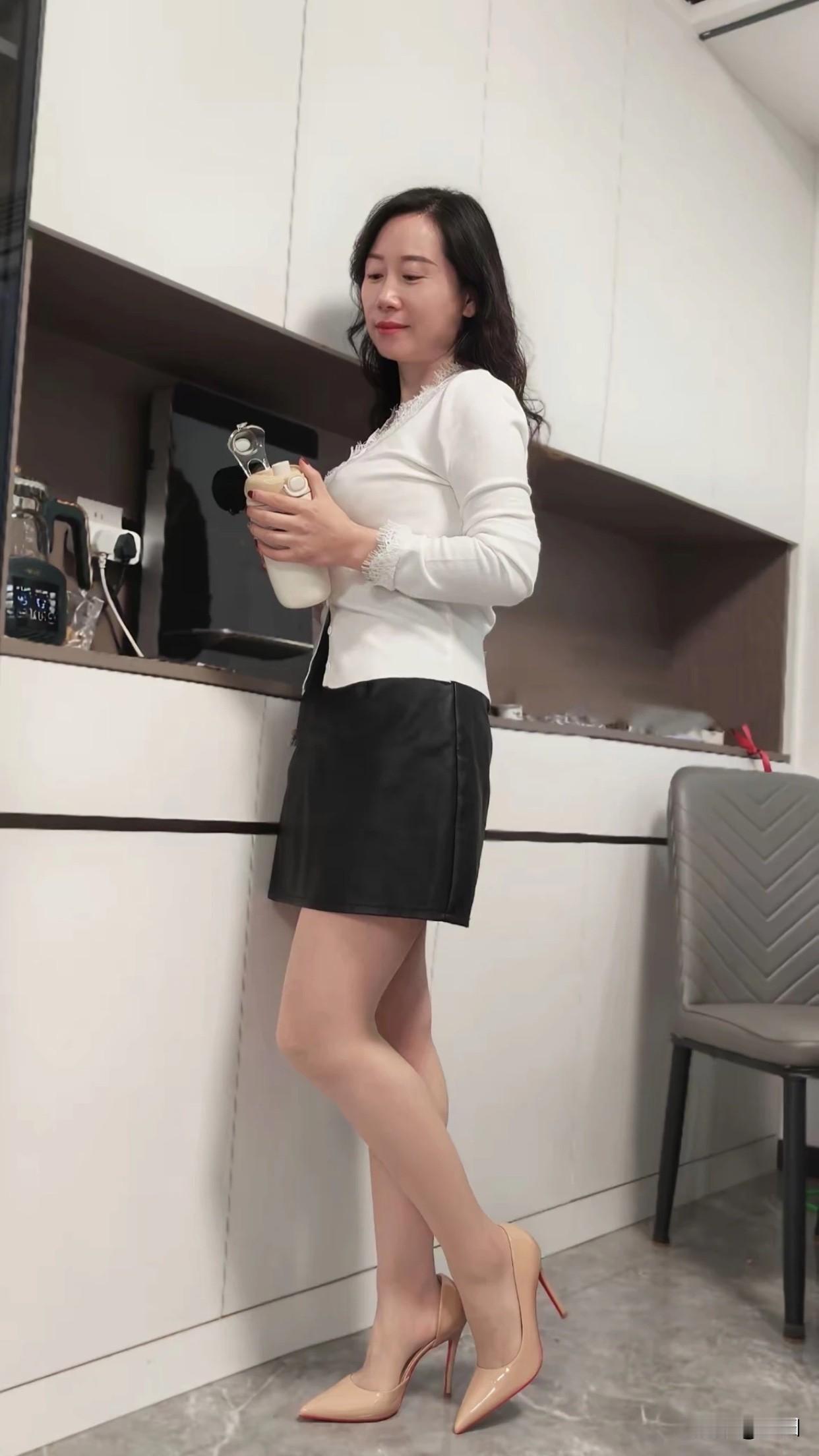 女人喜欢一个人,会有什么表现优雅厨房时光,白衬衫黑短裙,手拿奶昔,美不胜收!
