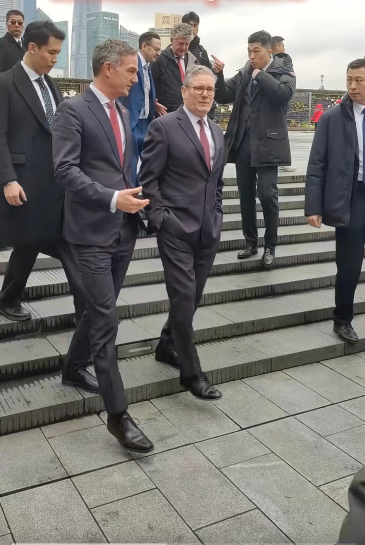 英国首相斯塔默打卡上海滩和平饭店,最后一天既轻松又辛苦。上海的天气多少还有点寒冷,首相双手插兜穿西装,他可能感觉这里比伦敦暖和多了,也许是心里更为暖和,来到黄浦江打卡上海滩,然后到和平饭店,这一段路是需要步行的,不过,多走一点路确实暖和,又可尽情领略中国第一大城市的繁华,感受东方大国的魅力。