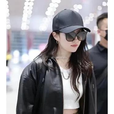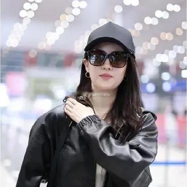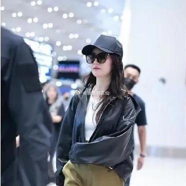 刘亦菲机场私服太绝了!黑色短皮衣飒爽,内搭背心小性感,卡其工装裤随性,洋气高级,不愧是行走的衣架子!
