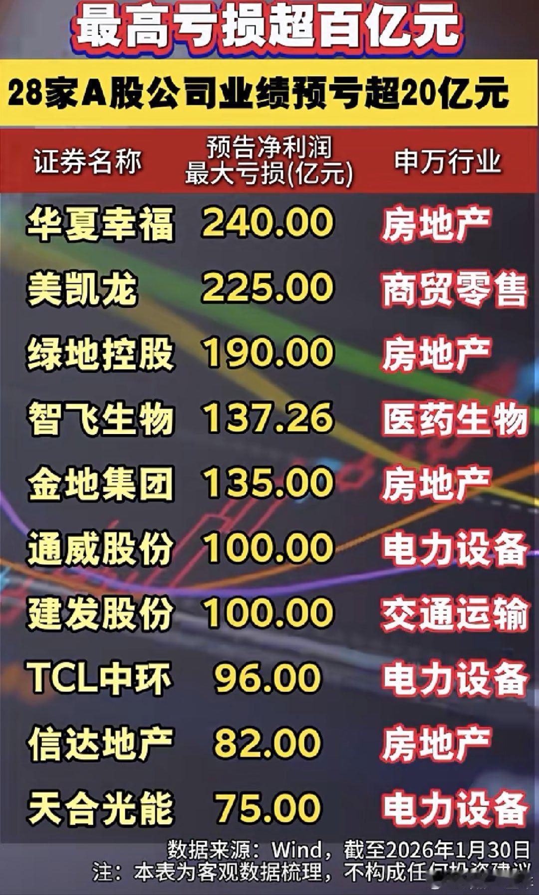 这些公司年报预告亏超20亿元 A股