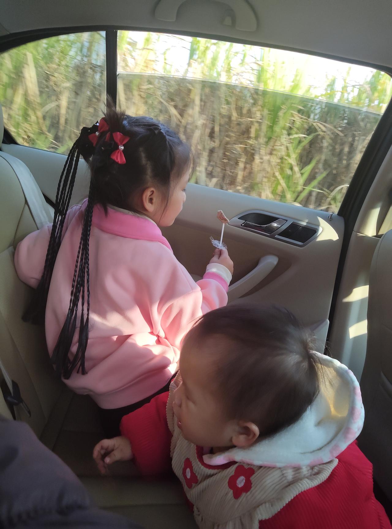 带娃出门的快乐 周末带俩娃出门兜风,后排瞬间成了她们的小天地。姐姐扎着俏皮的小辫子,举着棒棒糖看得入神,窗外的芦苇飞快往后跑。 小弟弟穿着带小花的马甲,仰着脑袋直勾勾盯着姐姐的糖,口水都快流下来了。 阳光暖乎乎地裹着车厢,听着姐姐的碎碎念和弟弟咿咿呀呀的哼唧,心里软得一塌糊涂。原来幸福就是这么简单,有你们在身边,去哪儿都像在度假。带小孩户外玩耍 带娃周末去哪儿 带孩休闲时光