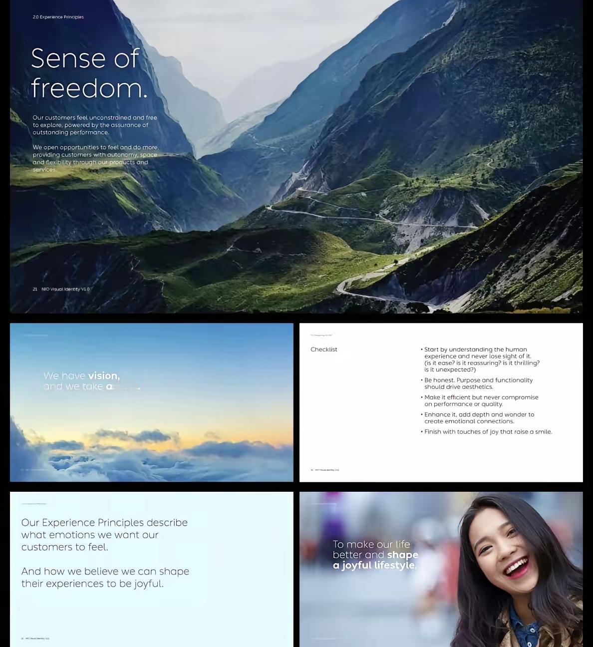 蔚来的PPT,这几天又在网上被刷屏了。 这次是蔚来的一个总监回母校讲课,讲的主题就是怎么做PPT。听我一句劝,别小看这事儿,这根本不是简单的技能分享,是蔚来那套“设计驱动”的品牌打法,已经渗透到骨髓里了。 说白了,它家从里到外,都透着一股子“洋气”。你去看别家的发布会材料,比亚迪技术强,但PPT喜欢堆参数;理想卖得好,讲的大多是家庭和产品。到了蔚来这儿,画风就变了,大片留白,字体讲究,讲的都是“生活方式”、“用户价值”。 这种“洋气”带来的影响很直接,就是让蔚来在大家心里的档次感不一样了。有媒体给几个新能源品牌排过序,蔚来、理想、极氪这几个均价过30万的算第一梯队,而这里头,大家普遍觉得蔚来更“高端”一点。 当然了,也有人会说,PPT做得好有什么用,车卖得好才是硬道理。这话没错,蔚来这些年亏损不小,销量压力也大。不过回过头想想,它砸那么多钱搞研发、建换电站,图的是什么呢? 图的就是用一套完整的体验,包括你看得见的车和设计,看不见的服务和社区,把“高端”这两个字坐实了。 举个简单例子,我认识一个蔚来老车主,他跟我聊过一件小事。他说最让他觉得不一样的,不是车多快,而是有一次去参加蔚来的线下活动,从现场的布置到工作人员穿的工服,甚至喝水的杯子,风格都完全统一,跟他手机APP里看到的画面一模一样。他说那种感觉,就像进了一个特别有格调的俱乐部,而不只是买了个代步工具。 你发现没,这种从一张PPT到一个杯子的统一,才是蔚来最难被模仿的地方。它让愿意为这种感觉买单的人,觉得特别值。 所以说,只要蔚来能坚持把这套“设计驱动”和“用户体验”的体系讲下去,它的高端故事就依然有听众。这场用视觉和细节构建品牌的竞争,远比拼参数要来得长久。 要我说,车子终究是路上跑的,但愿意为一份“洋气”的PPT和它背后的感觉掏几十万的人,还大有人在。