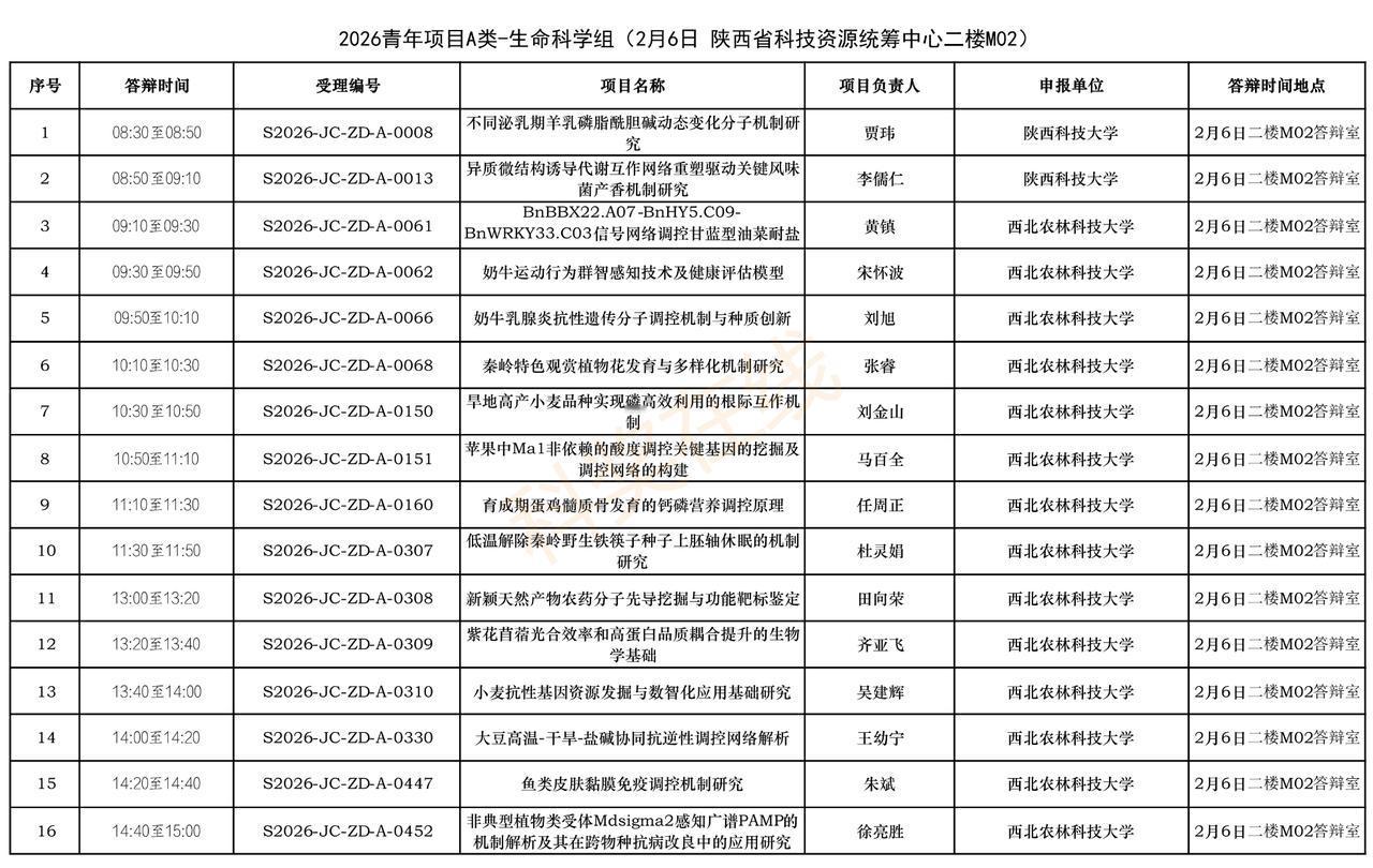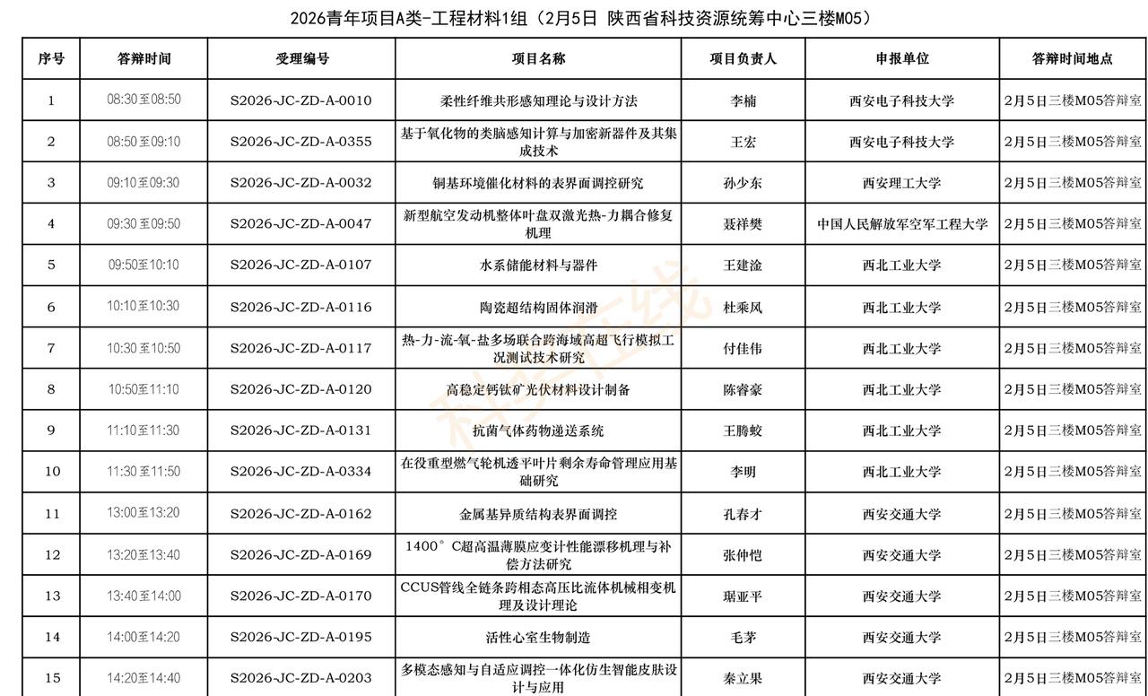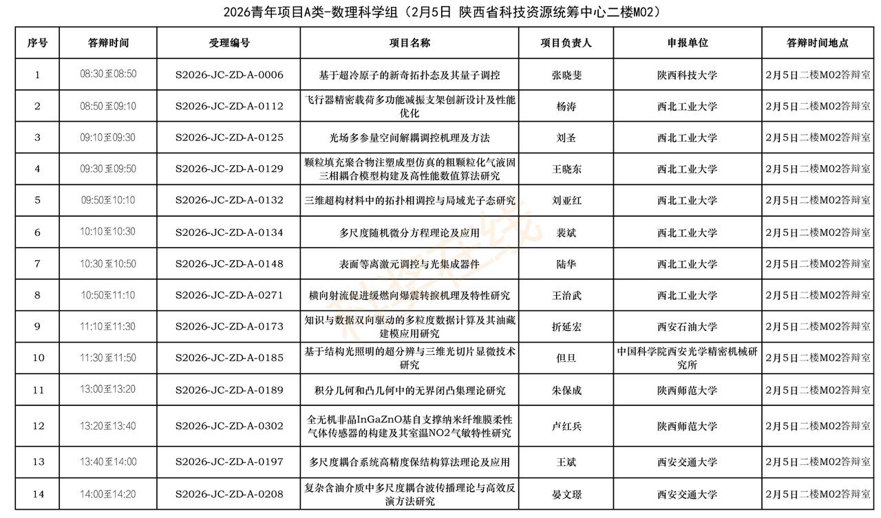 263个自然科学基础研究计划青年项目(A类),将进入答辩环节。 2月5日,陕西省