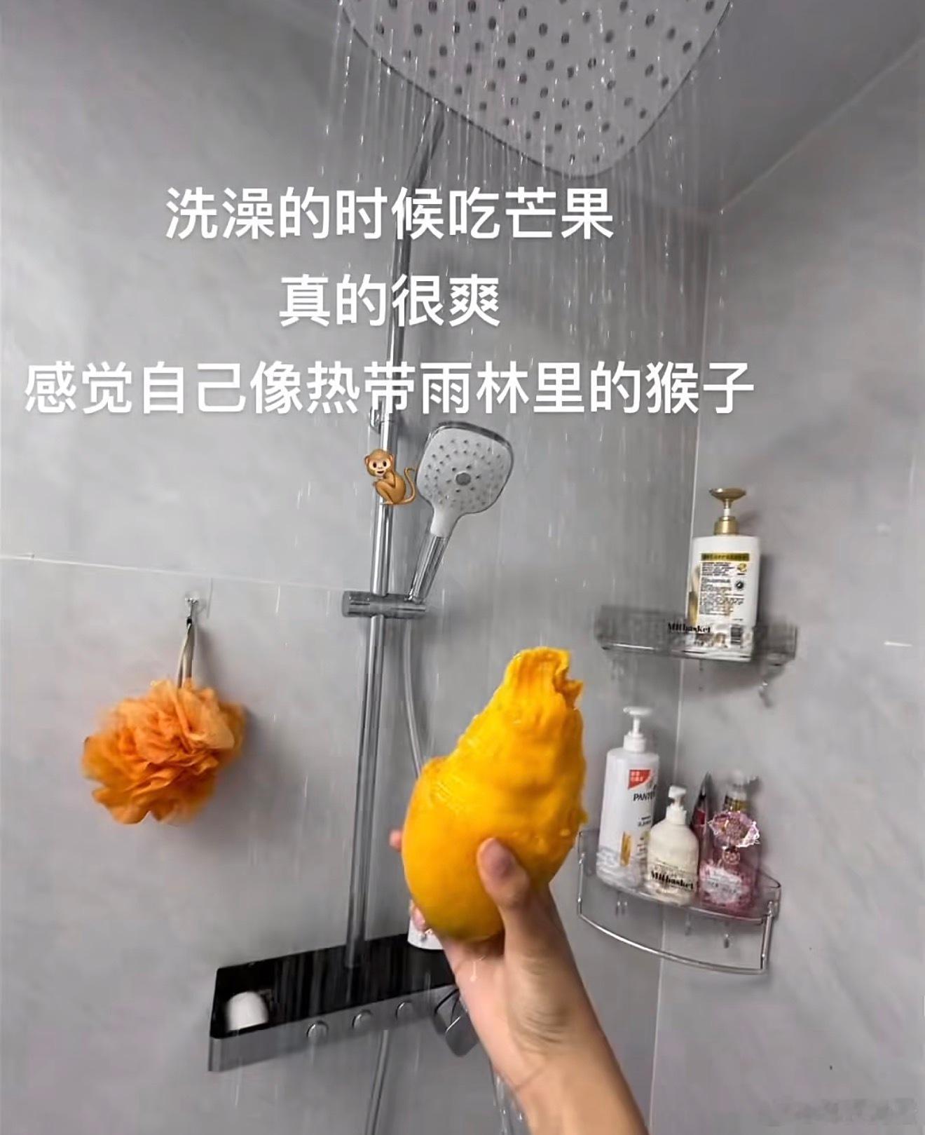 发明洗澡吃橙子的人是个天才难道不是洗澡的时候吃芒果更划算吗,因为每次吃芒果都很狼狈