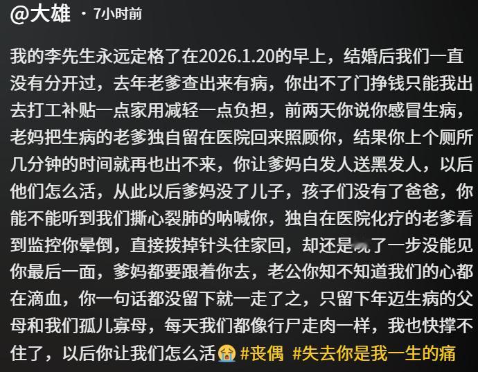 30岁男子上个厕所,突然晕倒到了厕所了,再也没有醒来了。留下妻子和孩子年幼的孩子以及年迈的父母,父亲还患癌。 妻子在社交平台公布了监控信息,悲痛发文,说丈夫前两天就有感冒了,没有特别在意,没想到上个厕所就再也没有能出来了。公婆白发人送黑发人,三个孩子失去了父亲,她失去了丈夫,多么痛苦啊。 网友们对这一家的遭遇都很同情,其中一个网友的观点很特别。那个网友在评论区说“三个孩子就是累死他的根源,看着家庭条件,吃饭都在厕所门口,也不像正儿八经的小区房,条件很差,这个条件还生三个,不累死才怪。” 其实有一定道理,如果不是家庭负担这么重,不是父亲患病,他可能不至于感冒了也不重视。