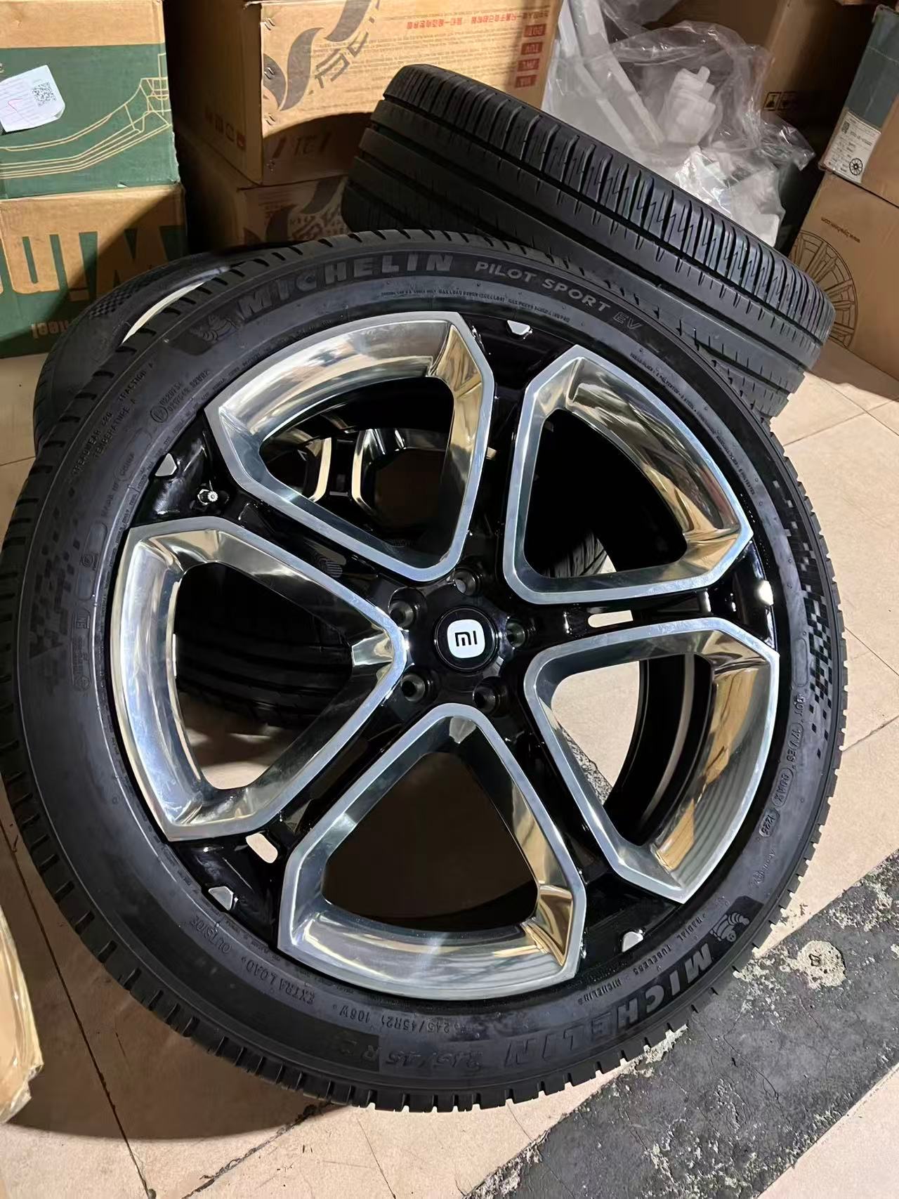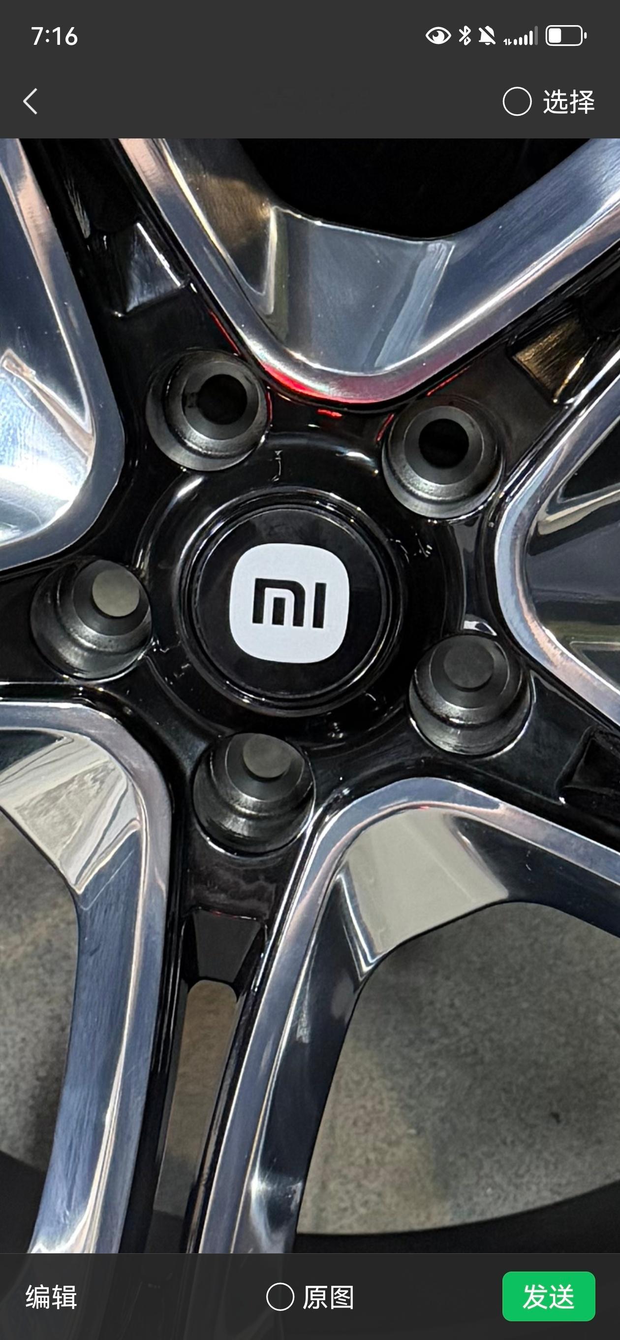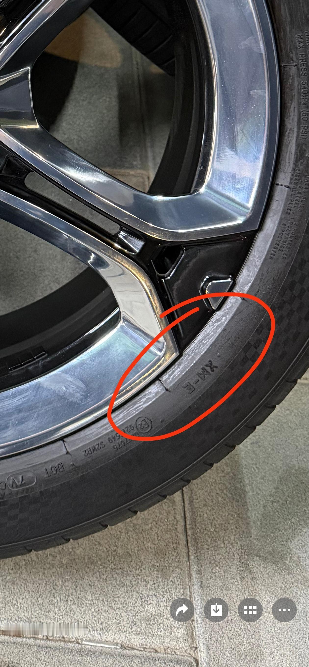 发图给我看了一下我当时觉得有点奇怪,因为印象中YU7Max的21寸梅花轮辋是PSEV性能胎,但这个拆车件是PS4 SUV,但是,它又有图4的小米XM专用标识。但直觉告诉我有问题,包括仔细看轮毂盖好像也和原厂不一样。