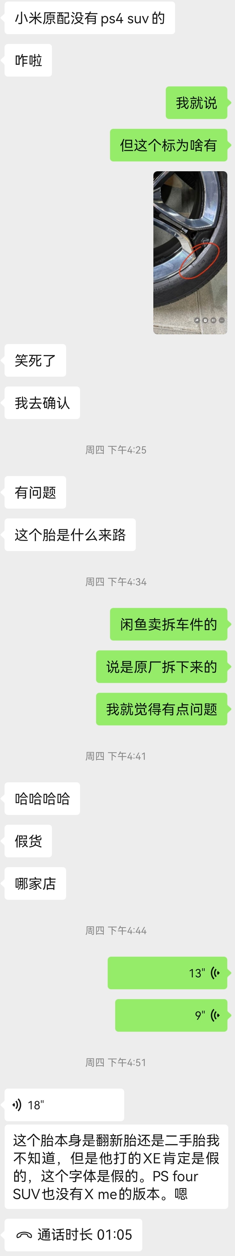 结果问了小米和米其林的朋友,都表示YU7压根儿就没有PS4 SUV的胎。。。所以这是个地地道道的假货,但又是个有点真的假货不足够了解的话很容易被骗。。。