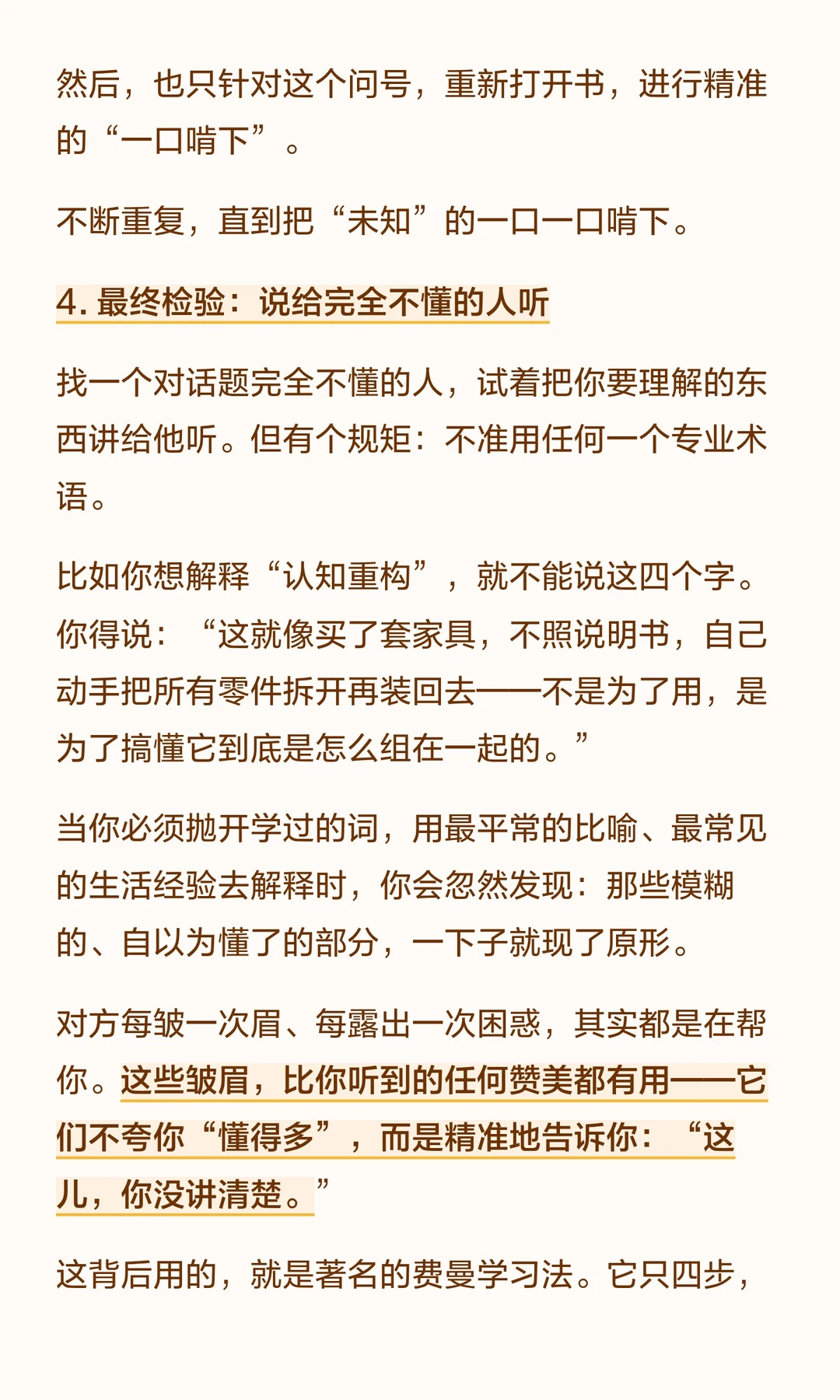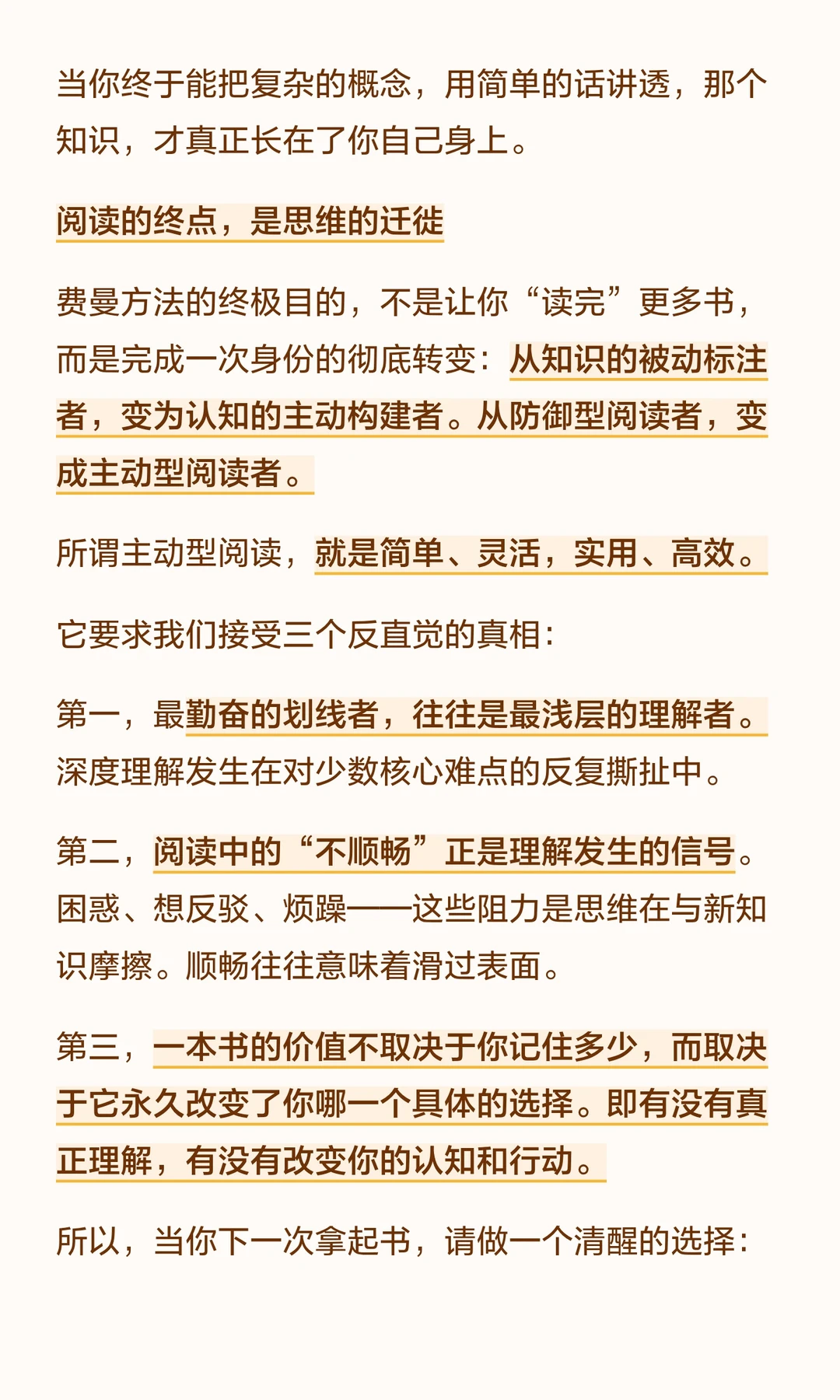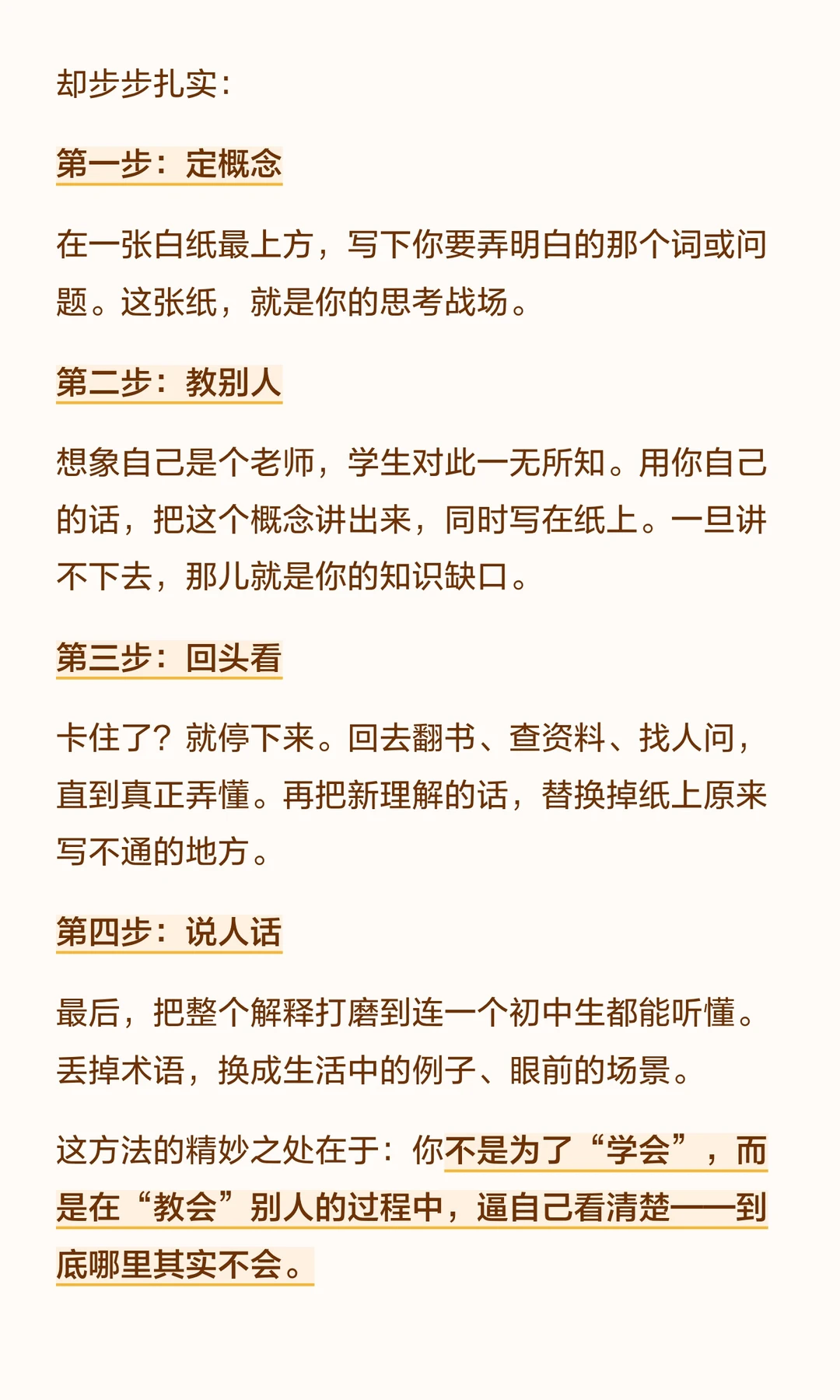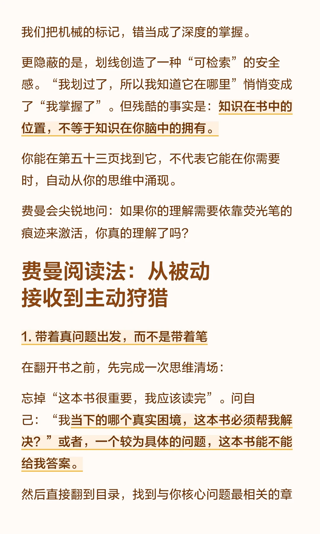 费曼会尖锐地问:如果你的理解需要依靠荧光笔的痕迹来激活,你真的理解了吗?