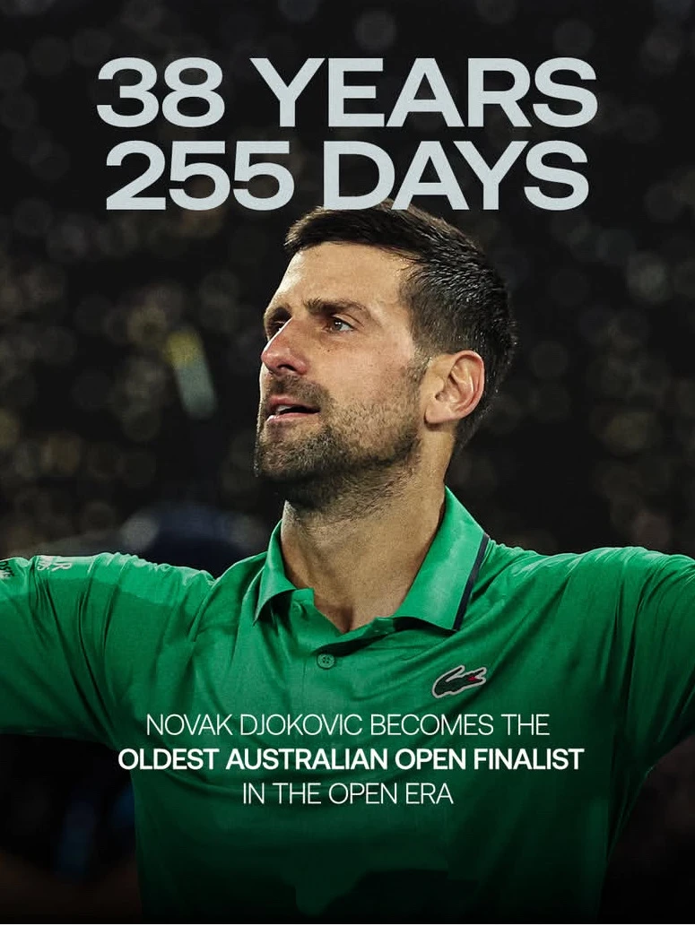 不可思议顽强挽救16个破发点, 五盘大战到凌晨两点, 德约第11次闯入澳网决赛! 以38岁255天的年纪, 成为进入澳网决赛年龄最大的选手。 传奇还在继续,生生不息。 之前辛纳对德约科维奇已达成5连胜, 总交手10次6胜4领先, 且这5场连赢9盘,德约仅抢七赢过1盘。 老家伙,你可以的!