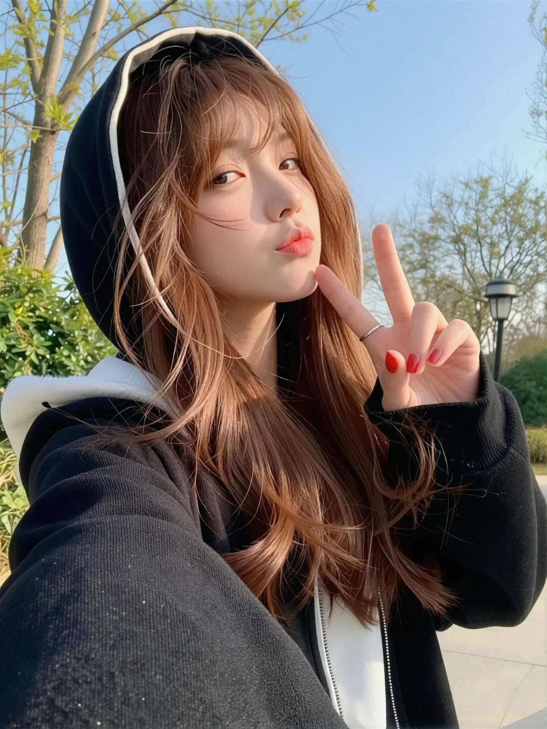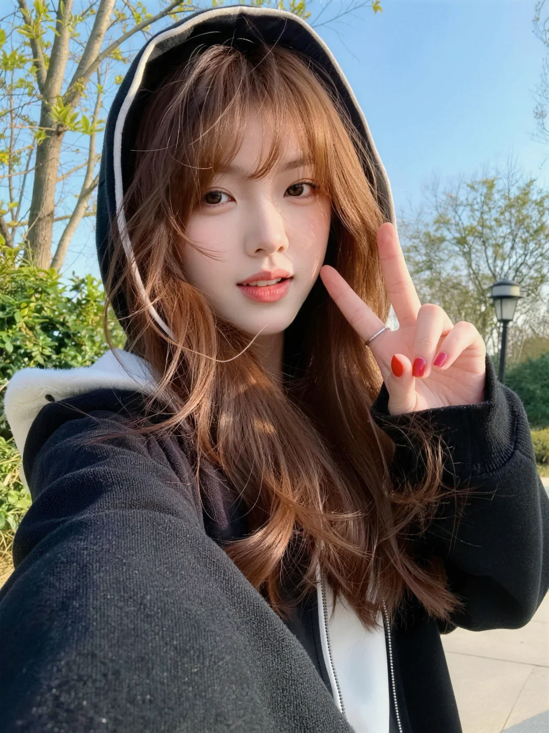 真实摄影,亚洲美少女薇薇,小清新风格,冷白皮,水光肌,超白皮肤泛着光泽,红棕色长