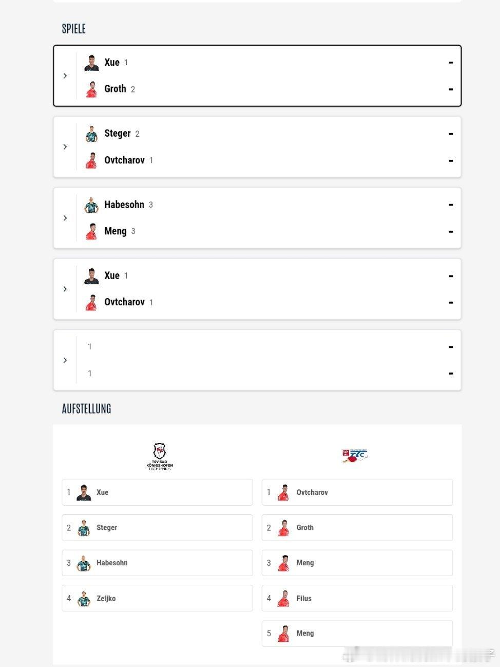 2025-2026赛季德甲乒乓球联赛第十五轮对阵表:巴特柯尼希斯霍芬VS福尔达 薛飞赛季首秀薛飞VS格罗特斯特格VS奥恰洛夫哈贝松VS孟繁博薛飞VS奥恰洛夫