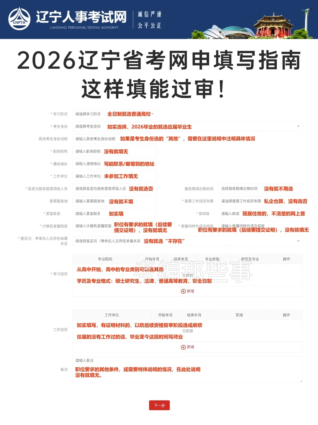 工作经历:如实填写有证明材料的,以防后续资格复审阶段造成麻烦。往届的没有工作过的话,毕业至今这段时间写待业