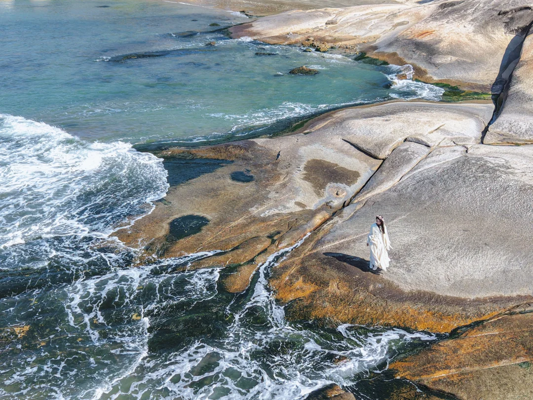海水没有田寮存那么玻璃,但真的一个人都没有哈哈哈哈,礁石更好看,很适合航拍
