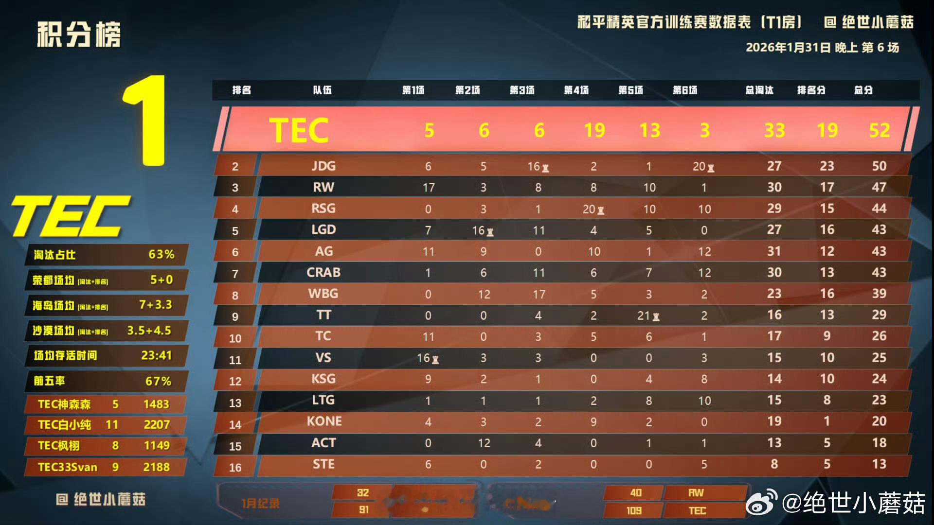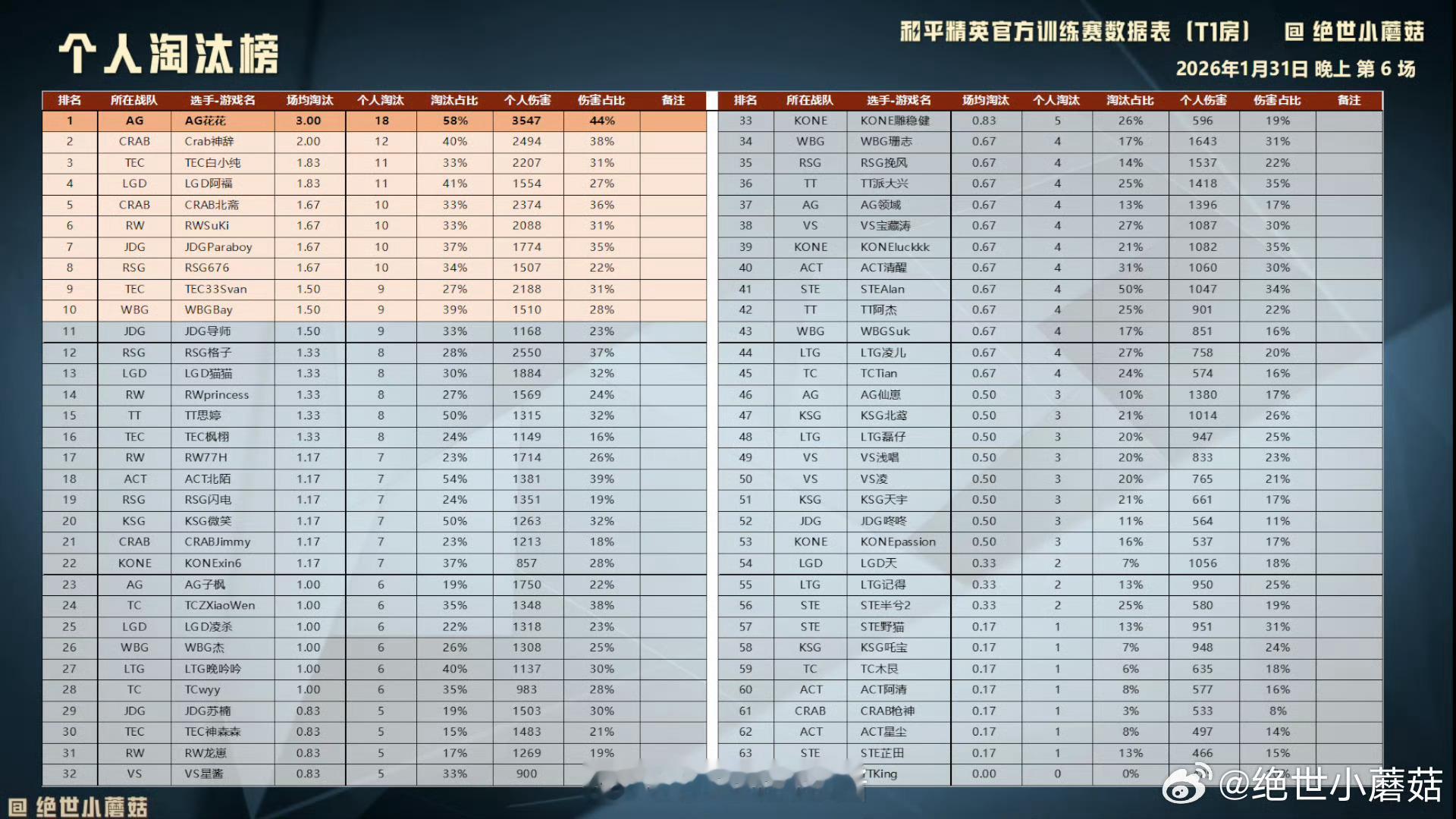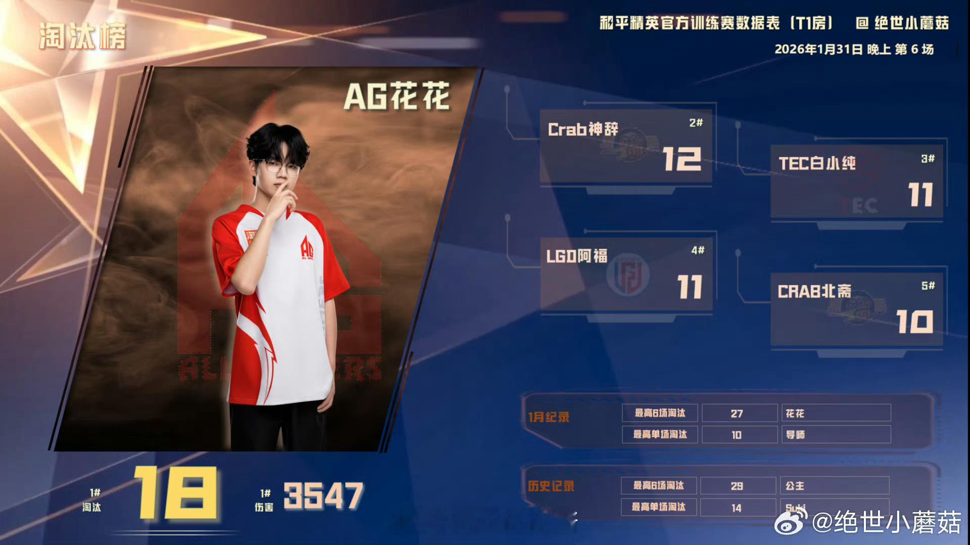 0131晚上训练赛战报恭喜拿下积分榜一🏆恭喜获得淘汰榜一🏆cr2026pel