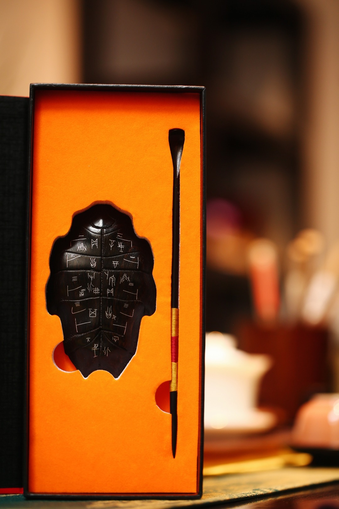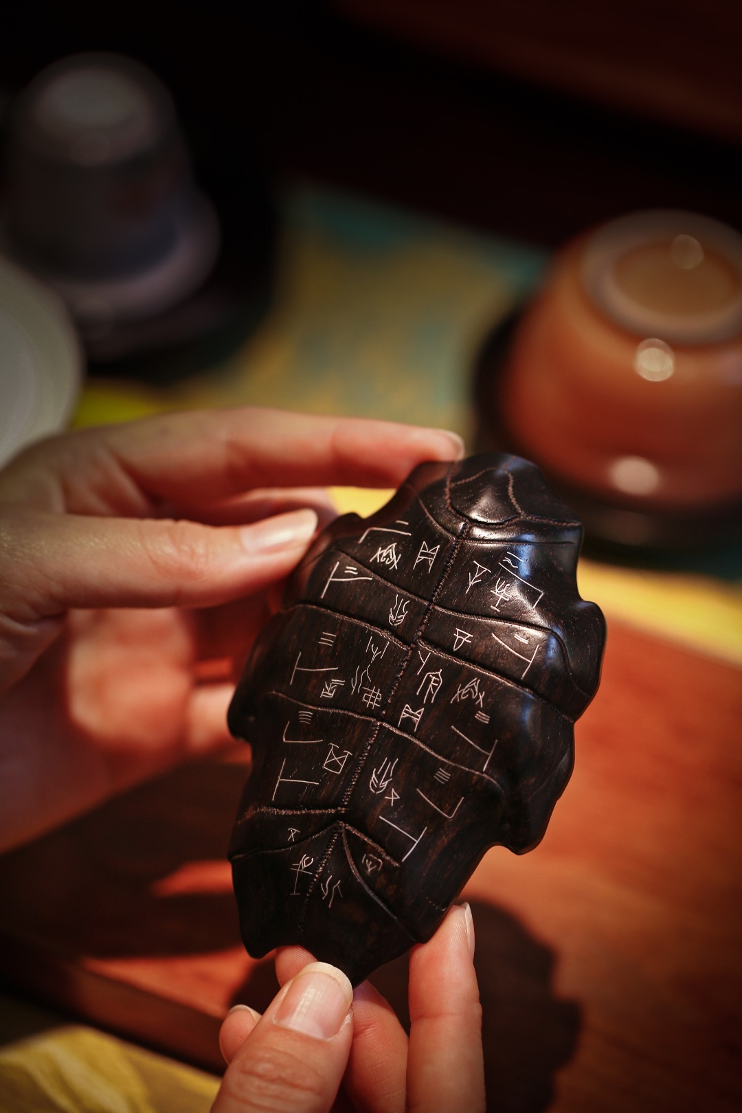中国上古以龟作为通灵之物,商代有玉龟腹板,春秋战国时也有龟壳饰件。今以复刻龟甲文制器茶则,辅以茶事,增茶席案上之趣。