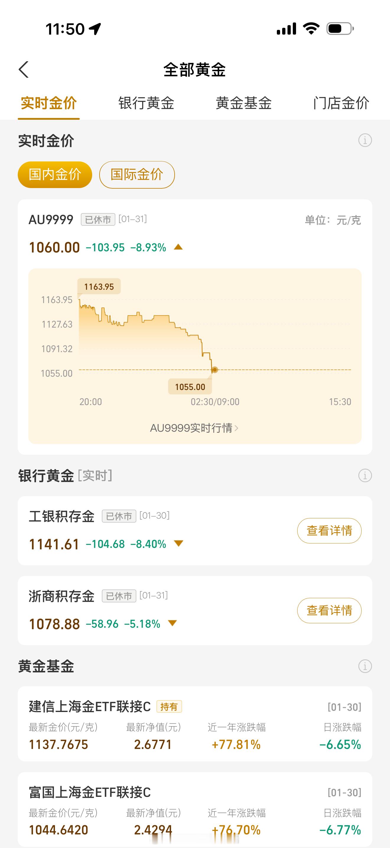 金价波动现在一点看不了绿色 大过年的 谁能不喜欢红色的!能不能飙红了能不能!