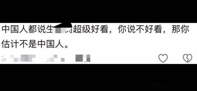 额....滋粉真的什么话也都能说出来的!怎么我作为观众我觉得💦🌲不好看,就不是中国人了?内娱怎么出了个这么➖🀄️的粉圈