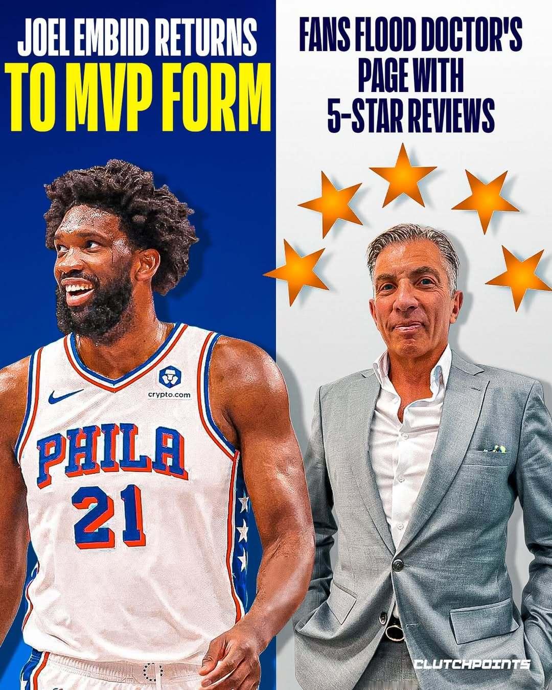 尽管如此,仍有不少人提前“判了恩比德死刑”,认为他的身体再也无法完全恢复。本赛季开局确实慢热,但恩比德逐渐找回节奏,场均数据来到25.7分、7.4个篮板和3.9次助攻。