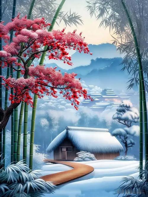 冰绡覆野净无瑕, 山色凝银接远霞。 樵径深埋松叶厚, 竹庐静对雪花斜。 围炉漫话三更暖, 呵手闲观一萼华。 最是清寒能涤虑, 澄明世界本无差。 友友,早安吉祥![微风][彩虹][微风] 每日一句早安 冬日早安晨语 暖心早安语 冬日早安