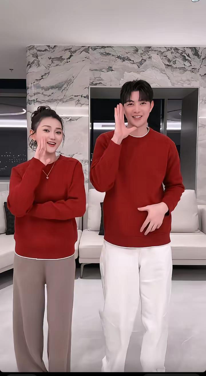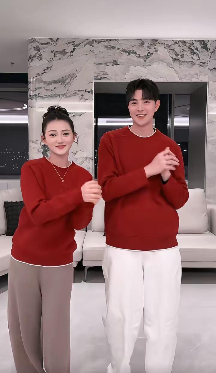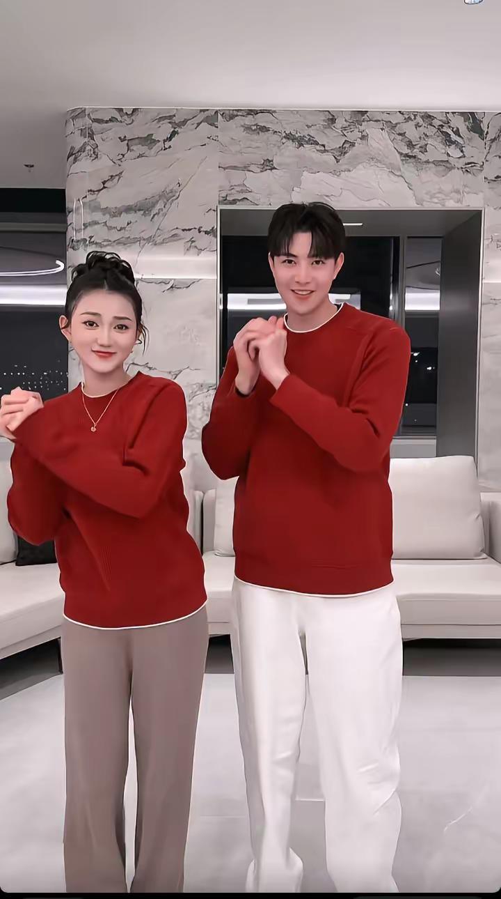 闻到年味的香气了吗?阿阮和笑笑姐提前拜年了!情侣装红红火火喜气洋洋