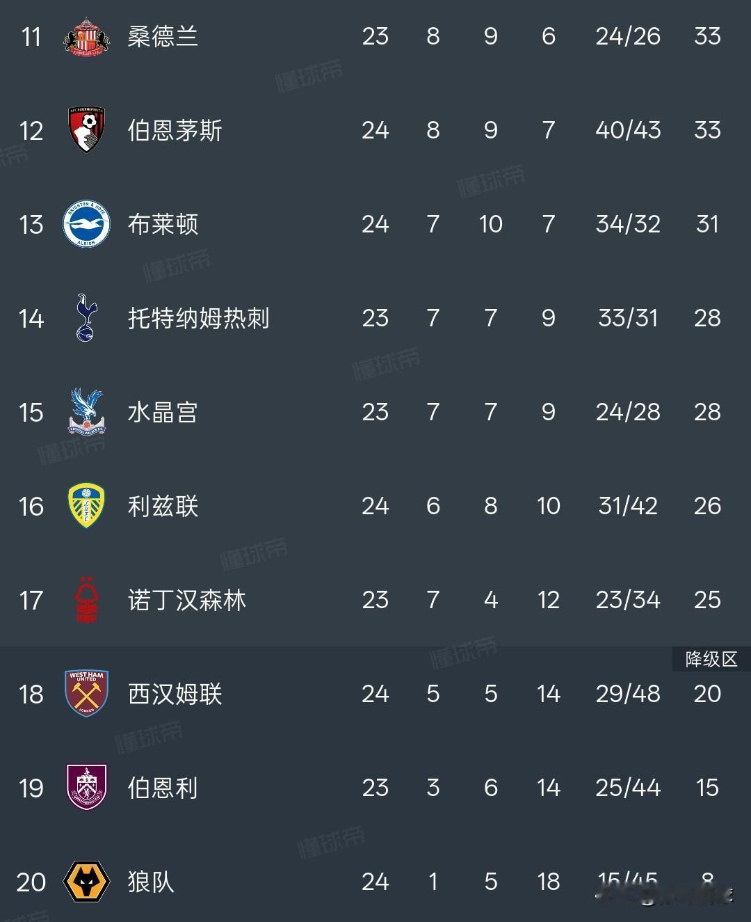 英超积分榜丨阿森纳4:0利兹联,阿森纳16胜5平3负积53分,枪手多赛一场的情况下领先第二名7分,第二名曼城本轮客场对阵热刺,第三名维拉主场对阵布伦特福德,二三名的比赛都不是太好打,阿森纳争冠形势相对利好,阿森纳是英超防守最好的球队。 切尔西3:2西汉姆,切尔西在两球落后的情况下连追三球,伤停补时阶段绝杀,切尔西拿到40分进入欧冠区。利物浦4:1纽卡斯尔联,利物浦积39分进入欧联区。狼队24场比赛只拿到一场胜利,降级是时间问题。