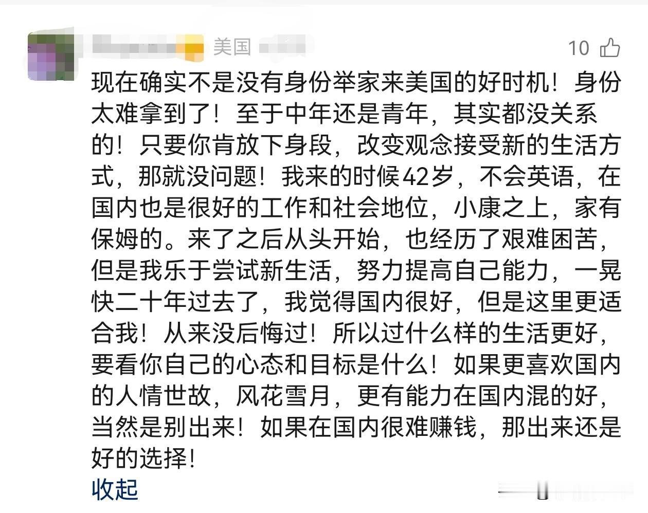 关注了那个全家拿B2签证去美国的视频号20多天了,感觉他看到的美国还是很真实的。既然能出去,估计都有最初的资本积累,万事开头难,慢慢来吧。虽然评论区还是有很多美国人赞成和鼓励的,但是我就没明白了,为什么会选择美国? 这就跟玩游戏一样,本来是正常难度,玩到一半玩不下去了,一般人都会降低难度,结果非要选择提高难度重新再来。全世界除了美国就不认识其他国家和地区了吗?真搞不懂。