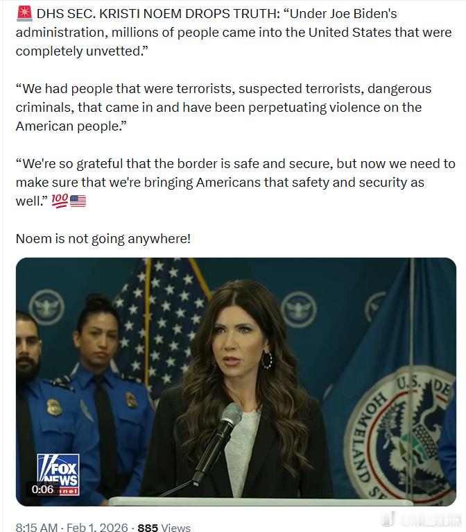 “在乔·拜灯执政期间,有数百万人在完全未经婶查的情况下进入了美国。”