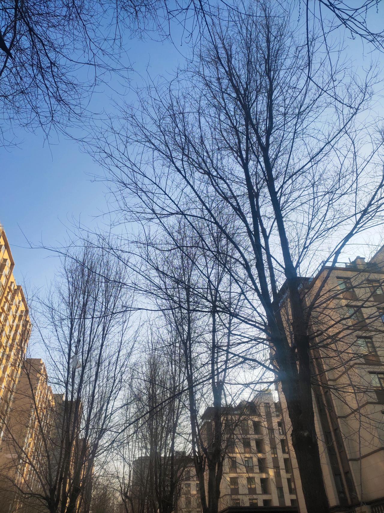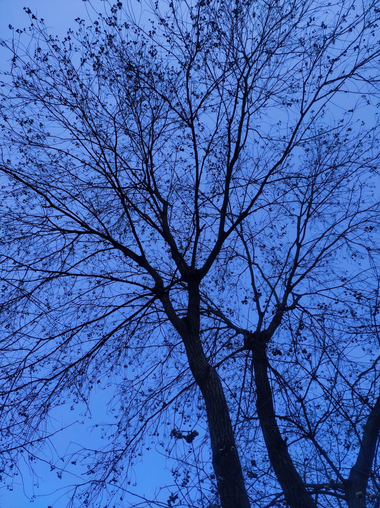 冬日里的树木, 褪去了繁华的叶裳,在寒冷中随风枝条舞动,以遒劲之姿,尽显冬韵之美。🍂😊
