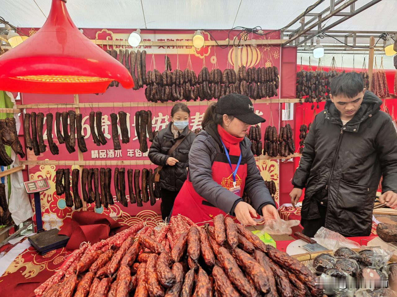 逛年货节,买年货。春节越来越近了,今天我来到筑城广场年货市场,买点年货。这里各个地方的土特产,香肠腊肉齐聚在一起。琳琅满目,应有尽有。前来购买年货的人很多,十分热闹,充满人间烟火气。我买了些香肠、腊肉、血豆腐、二块粑和一只板鸭。这是过年的味道,想买的,都买到了,感到很高兴,可以开开心心过大年了。
