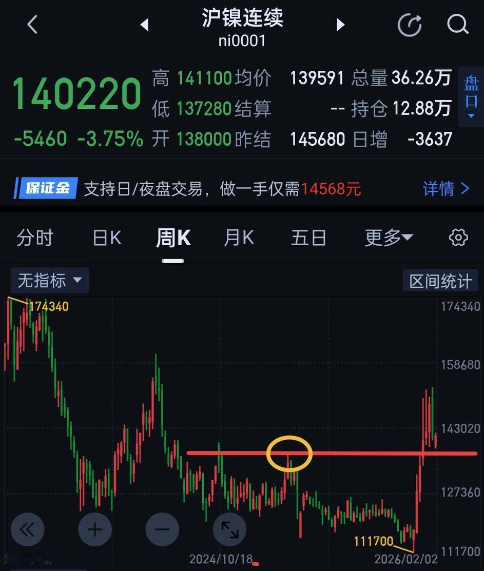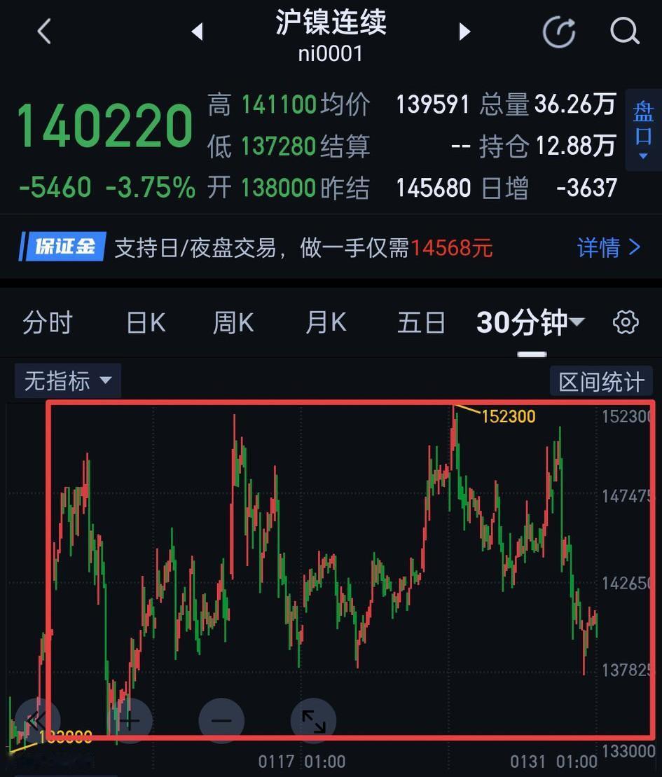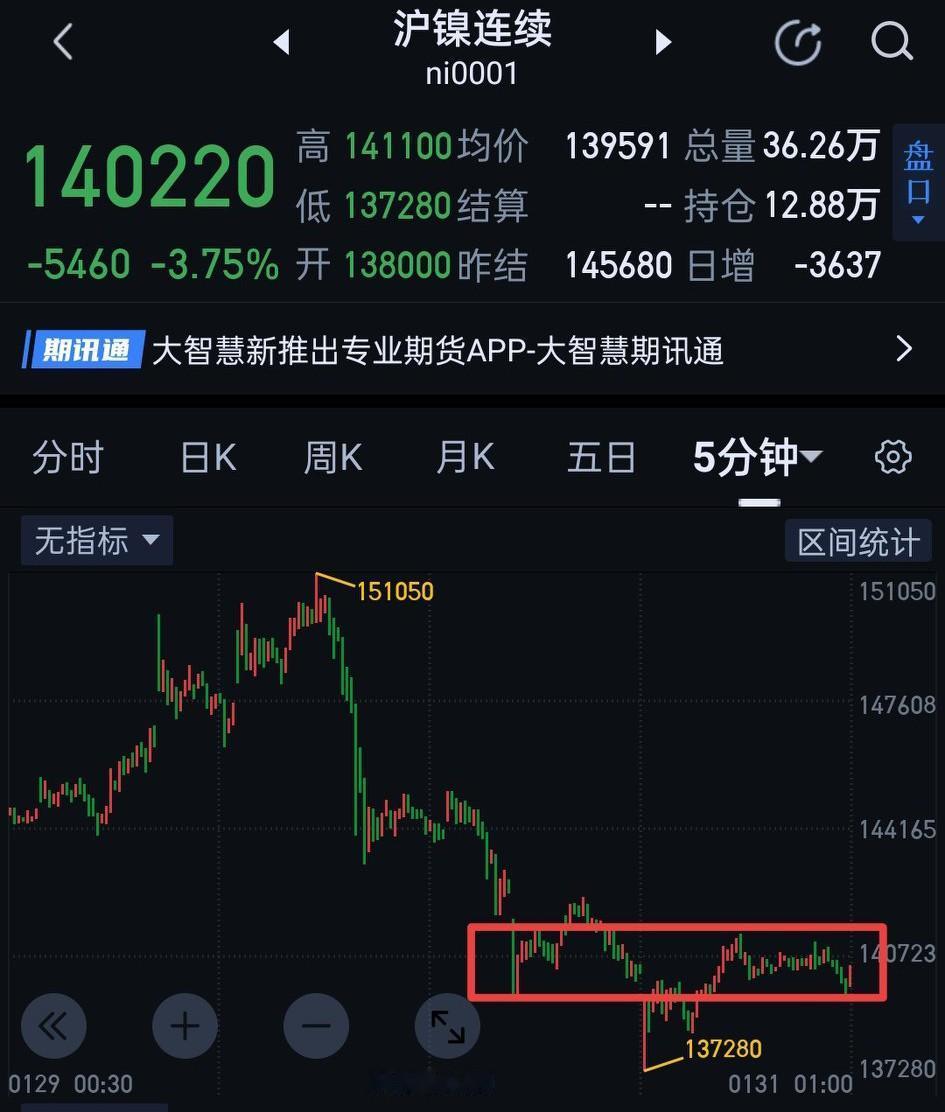沪镍,节后行情仍值得期待。今天沪镍从小级别到大逐级拆解。先总结沪镍在五分钟图上的结构。周五下午收评说的多头夜盘会用一分钟中枢震荡消耗空头能量,目前结构上该中枢已清晰可见,图〈1〉。周一该中枢上沿141100能否有效站稳是关键。站稳,开始于151050的三十分钟一笔下结束,否则当下的三十分钟一笔下仍不能确认完成。如三十分钟一笔上形成,可以暂用图〈2〉区间震荡的视角跟随。在三十分钟图,经过一段时间的震荡,图〈2〉区间内已在构建三十分钟中枢,图〈3〉。现在该中枢的第三笔还不能确认完成,图〈4〉,(由于手机编辑的局限,无法用三十分钟图展示走势全貌,暂用六十分钟图替代)。如果三十分钟中枢第三笔能在133430上方结束,将是相当完美的结构,后期围绕该中枢离开段向上的空间还是非常值得期待的。如果第三笔在133430下方结束,往上的空间将会大打折扣。(离开段形成很可能是春节后,节前大概率仍在图〈2〉区间震荡,此处为个人观点,一切以走势为准)。图〈5〉的结构1月20日文章有过解释,不再赘述。