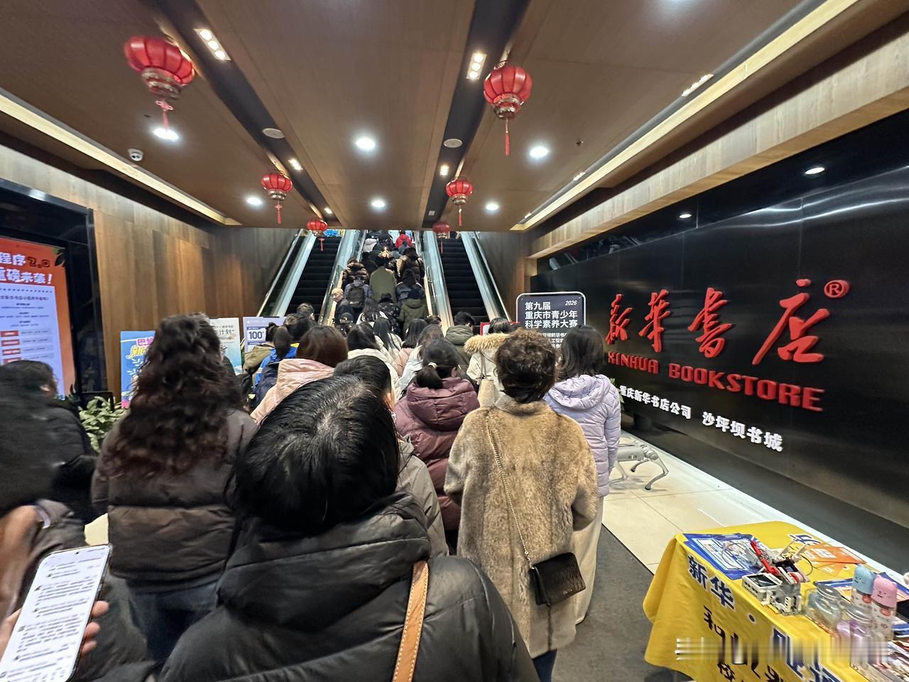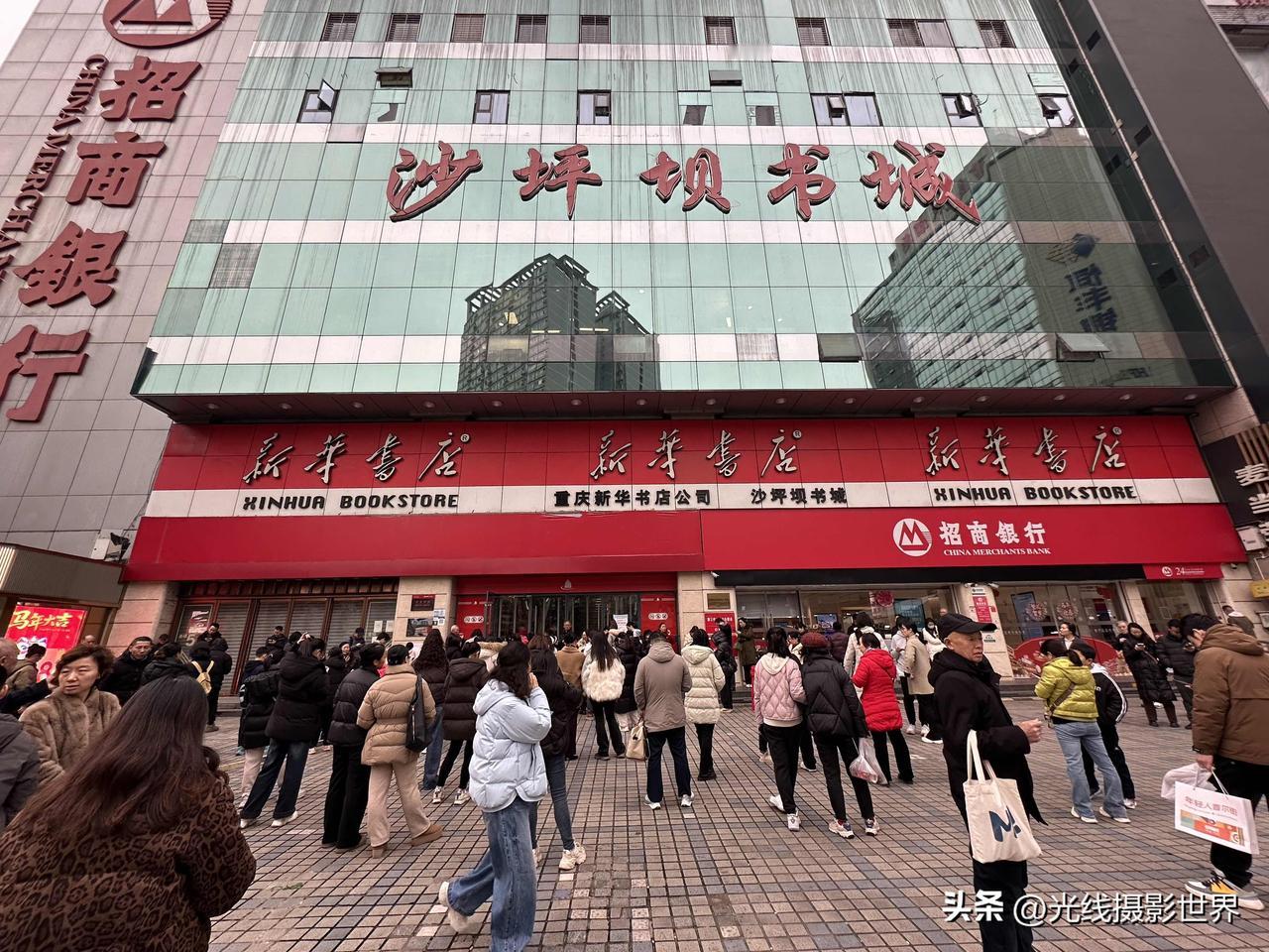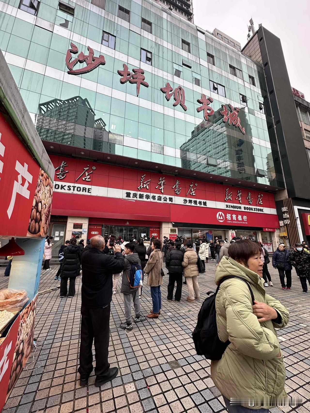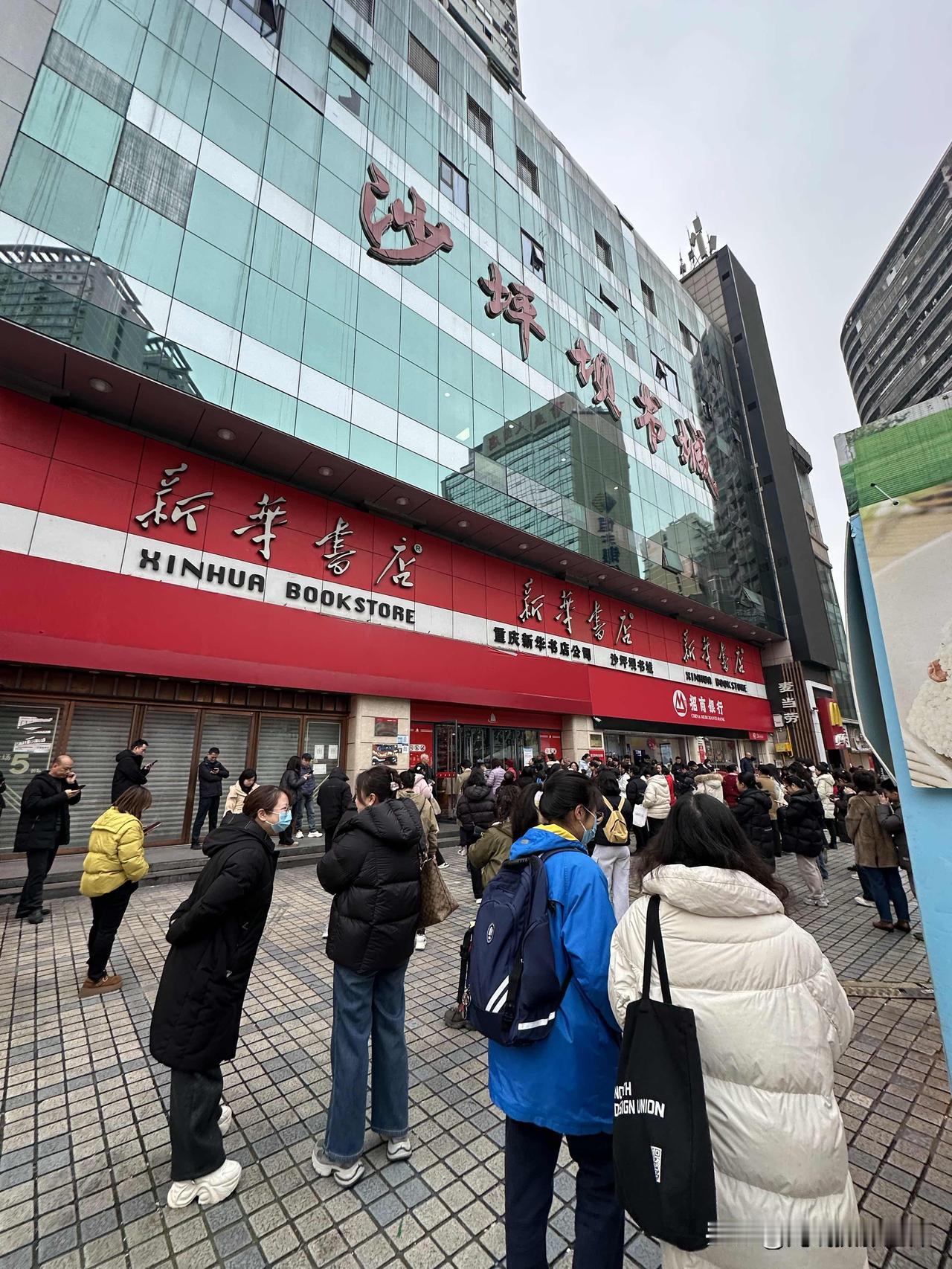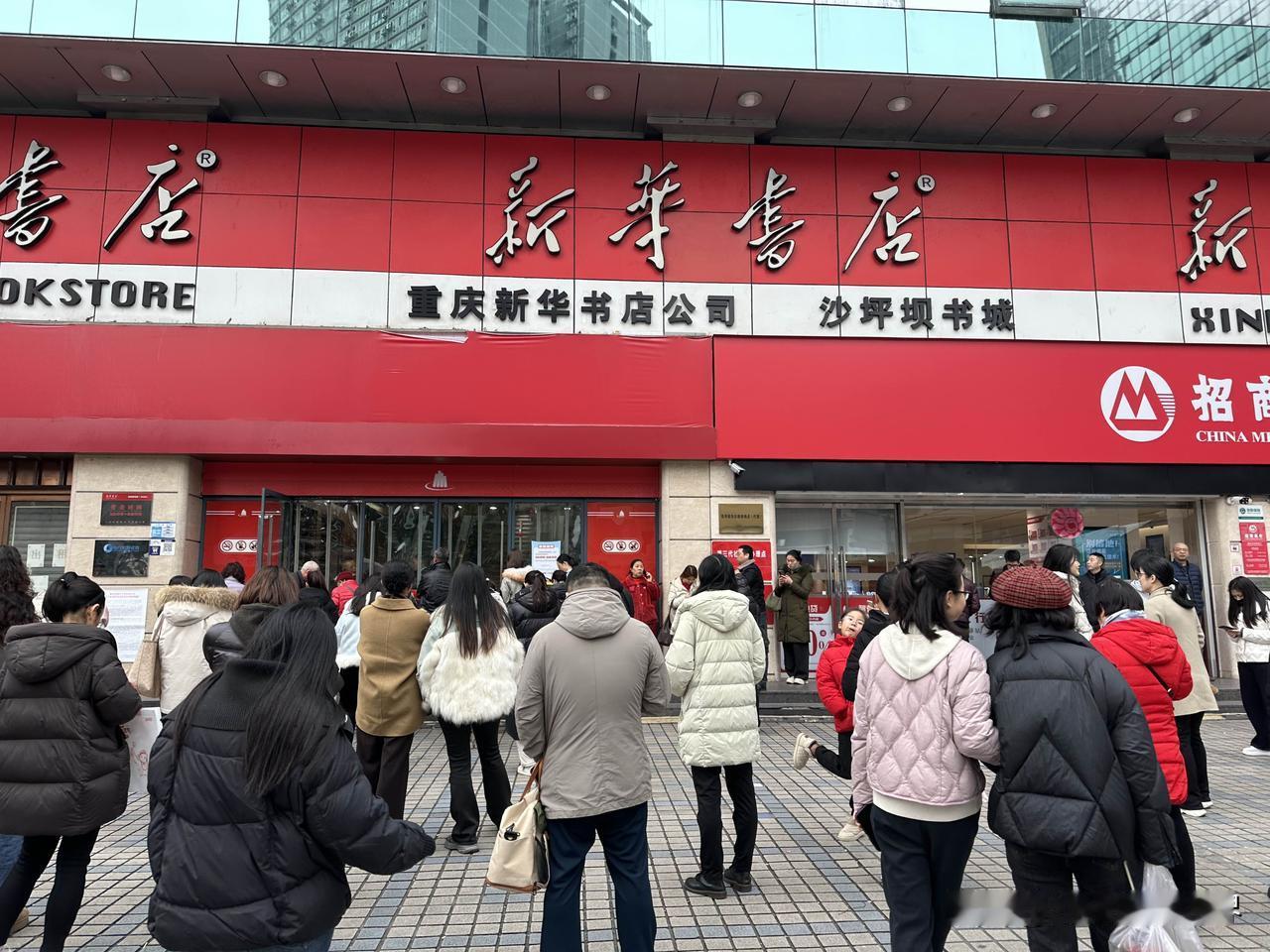 还有三分钟开门营业,万万没想到,重庆沙坪坝新华书店门口,乌泱泱一大群人等着开门呢