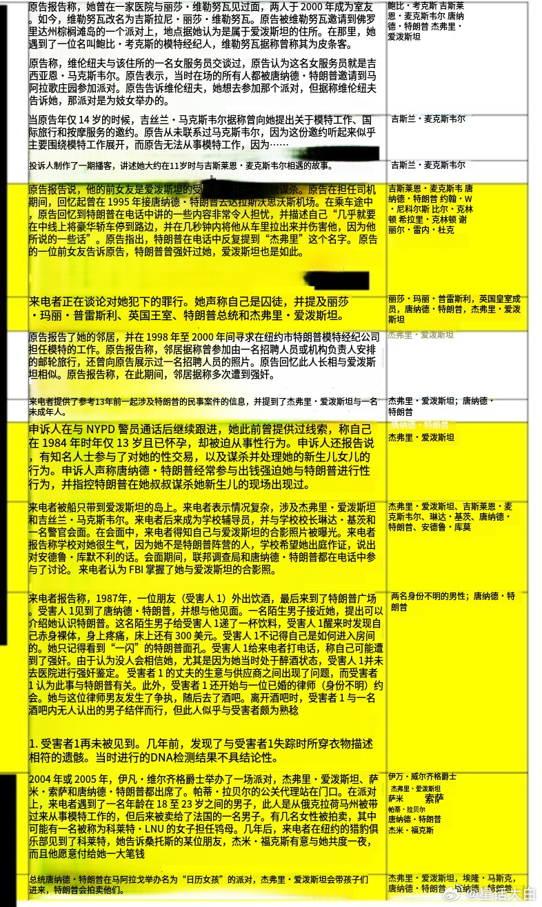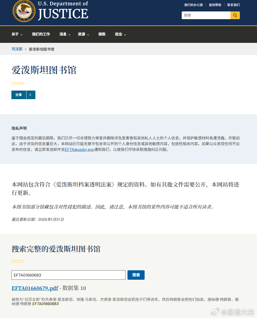这次爱泼斯坦案又公布300万份文件,估计是文件太多,司法部一开始公布的文件,有漏网之鱼,出现对特朗普不利的内容,然后被发现后,司法部又将其删了,有点此地无银三百两的感觉。编号为EFTA01660679-EFTA01660683的文件里有提到:“特朗普在马阿拉戈举办名为“日历女孩”的派对,杰弗里·爱发斯坦会带孩子们进来,特朗昔则拍卖她们”投诉对象还涉及了马斯克。(图1)还提到:“申诉人在与警员通话后继续跟进,她此前曾提供过线索,称自己在1984年时年仅13岁且已怀孕,却被迫从事性行为。申诉人还报告说有知名人士参与了对她的性交易,以及谋杀并处理她的新生儿女儿的行为。申诉人声称唐纳德·特朗普经常参与出钱强迫她与特朗普进行性行为,并指控特朗普在她叔叔谋杀她新生儿的现场出现过。”还提到:“该女子被迫为一名男性朋友XXX,据称这名男性朋友在XXX时咬了特朗普总统。该女子在嘲笑自己咬特朗普总统时,脸部遭到殴打。她还遭受了爱泼斯坦的虐待”(看不太懂,不知道是不是机翻问题,还是特朗普玩得花)(图2)然而,现在去司法部官网已经查不到“EFTA01660679-EFTA01660683”涉及特朗普的文件,那么网络上流传的EFTA01660683文件截图,是不是假的?我在司法部官网查到蛛丝马迹,在美国司法部官网搜索“EFTA01660683”,会出现EFTA01660683的信息简要,其中就提到了“特朗普拍卖孩子”的信息(图3),这就说明,网络上流传的EFTA01660683截图是真的,只是司法部发现对特朗普不利后,又将其删除,也幸好美国现在是草台班子,不然这样劲爆的内容,估计早就被涂黑,要么就不会被公布。2024年,国内网络上很多人基于反对民主党,而选择支持特朗普,不少人在支持特朗普的过程里,有些饭圈化,还有些人是黑特朗普黑出感情,所以当时传出特朗普跟爱泼斯坦有关联时,不少人想当然的认为,特朗普只喜欢金发大波浪,所以认为特朗普不会上岛。我当时就提醒过,欧美的未成年人也可以是金发大波浪。而且,从目前信息看,特朗普本就是爱泼斯坦的团伙成员之一。这次公布的文件,还有很多让人三观炸裂的内容,比如“吃婴儿”,这个我也去查证,后面新开一贴来说。相比之下,比尔盖子感染性病找抗生素给妻子喂药的内容,都显得不是那么炸裂。注:这些爆料的信息,都还只是当事人陈述。#爱泼斯坦在厨房追逐女孩##爱泼斯坦#
