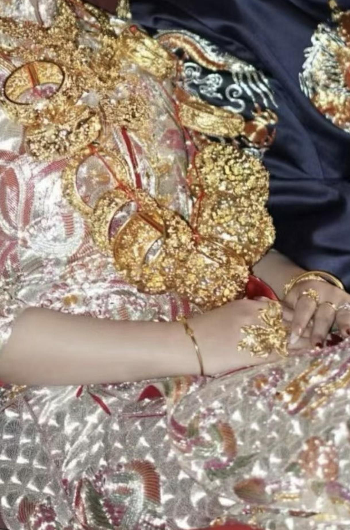 昨天原本是有机会去饮喜酒的,但是因为我外出了就没有去,只能看看家族群里的图片和一个接一个的微信红包,我也不敢点开,因为他们是在玩游戏,收到最多钱的人要发红包的,其实最多的也就几元钱。我截图分享一下,广州人嫁女佩戴的首饰有多少?