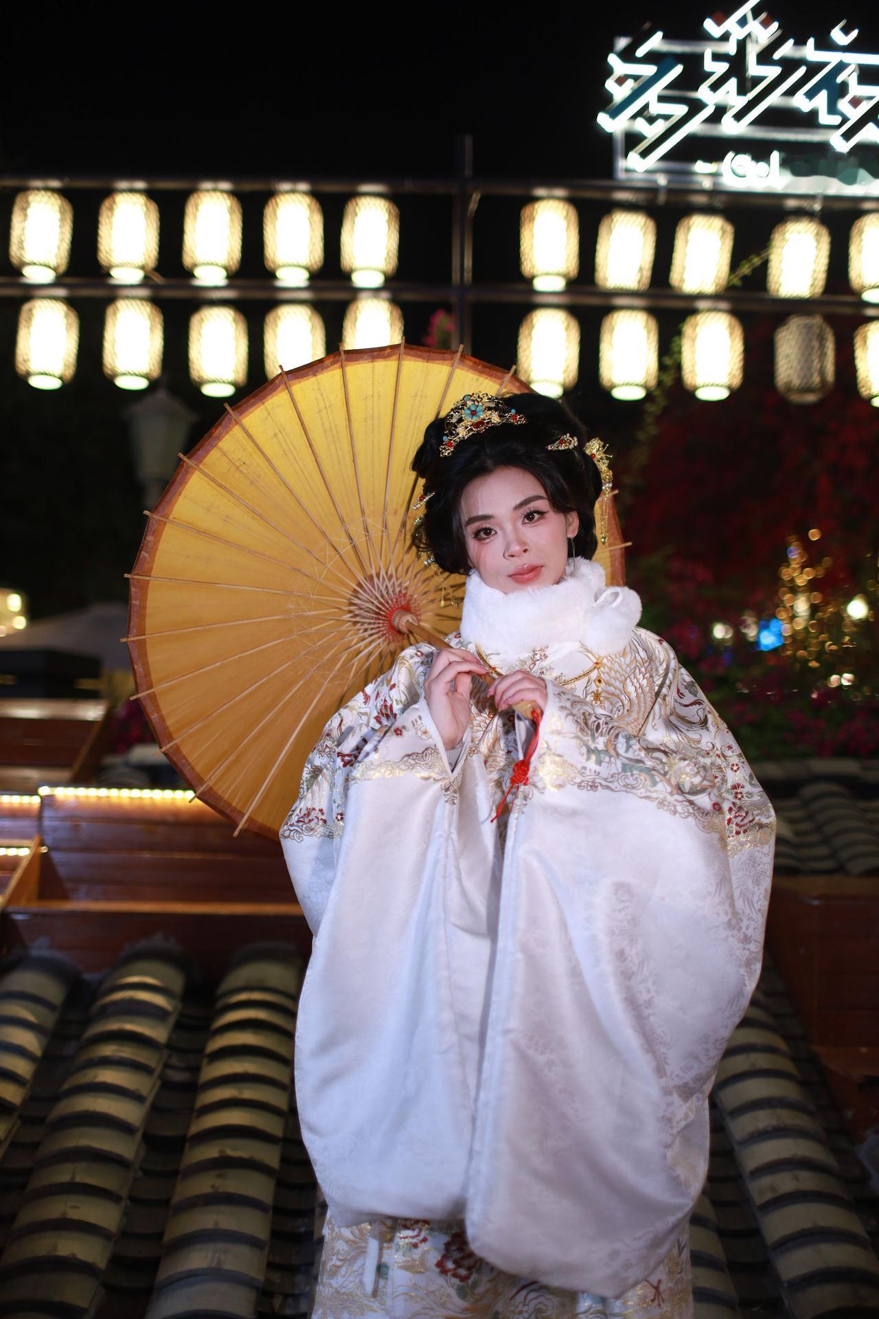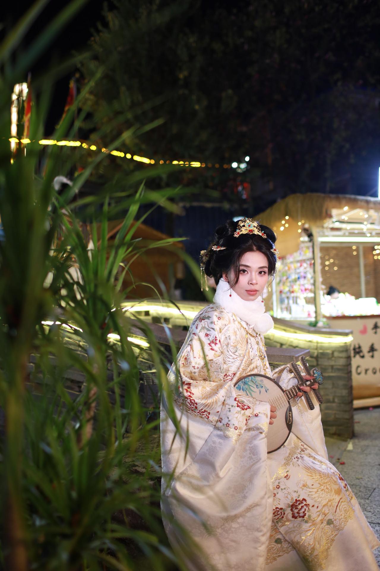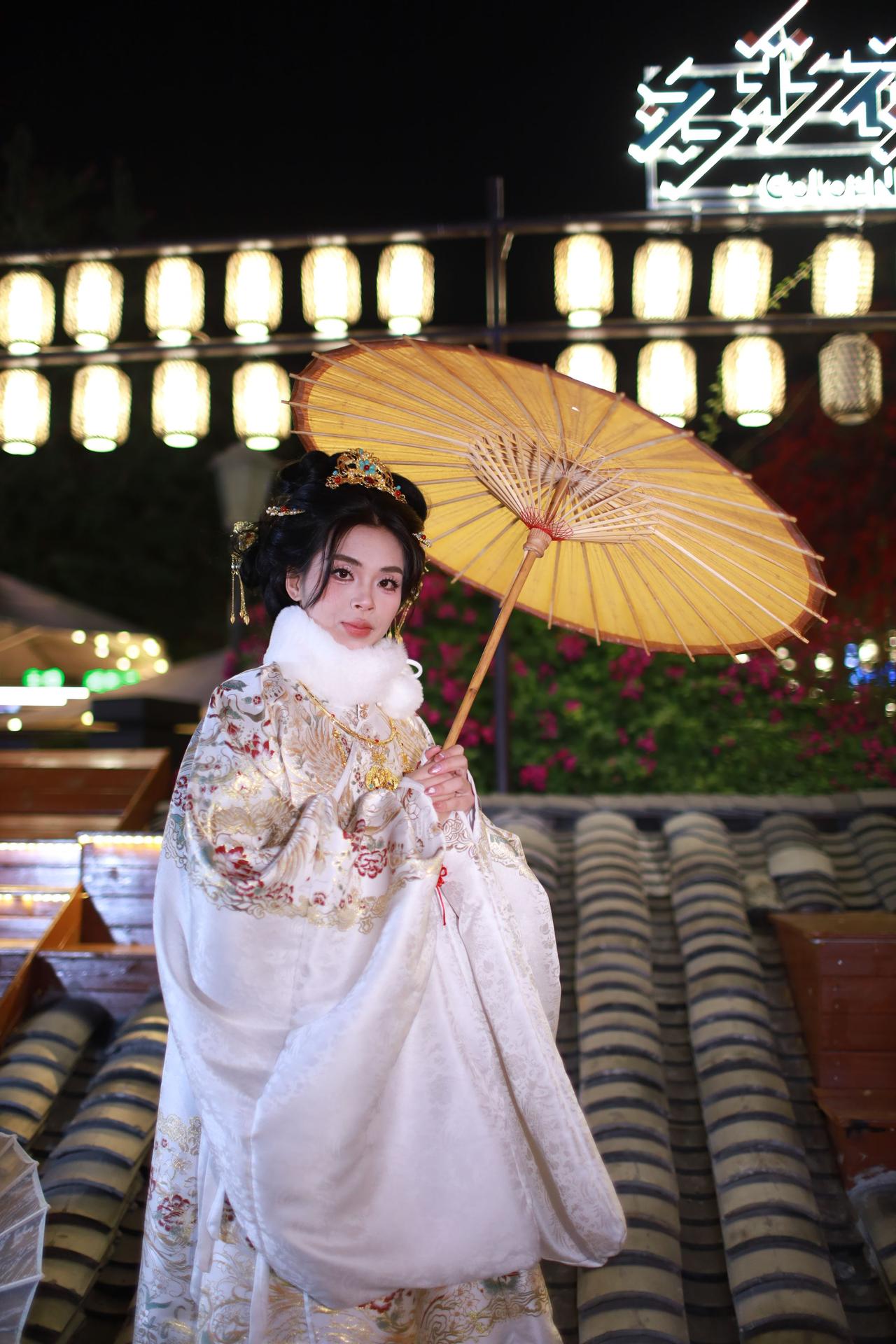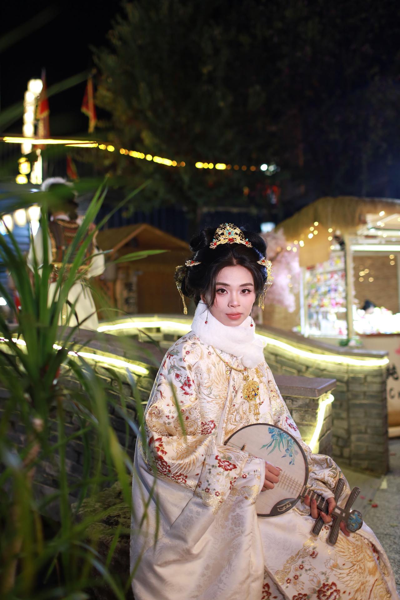 没有风的夜晚还是冷,挡不住喜欢拍照小姐姐的热情。没有笑容,仍可欣赏。~~国风美学 非遗文化传承 穿着汉服走天下 我拍出的宿命感照片